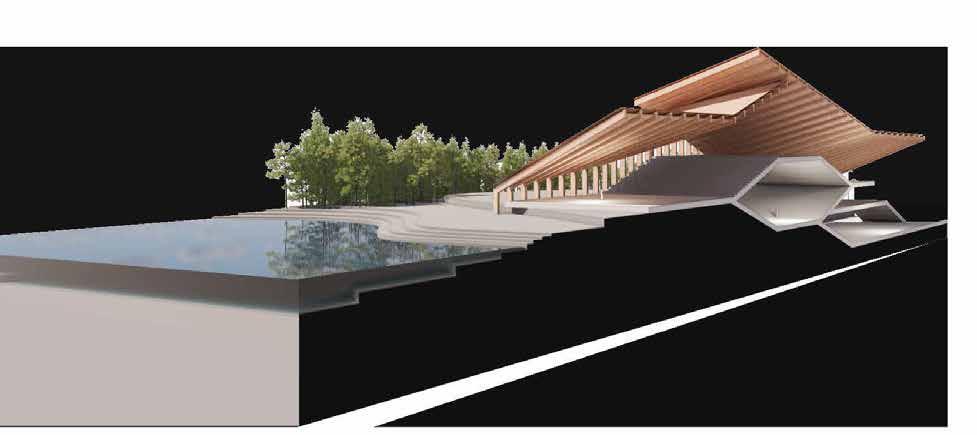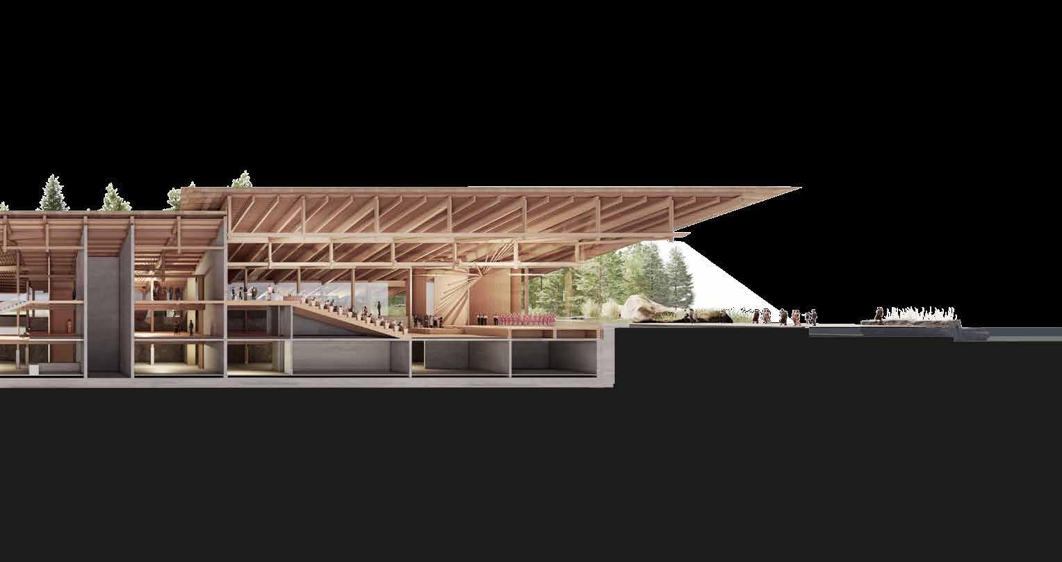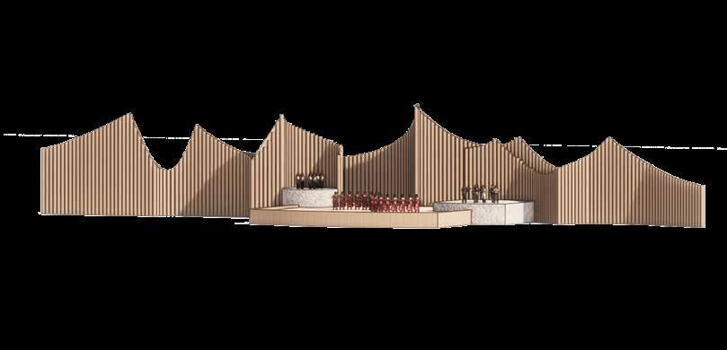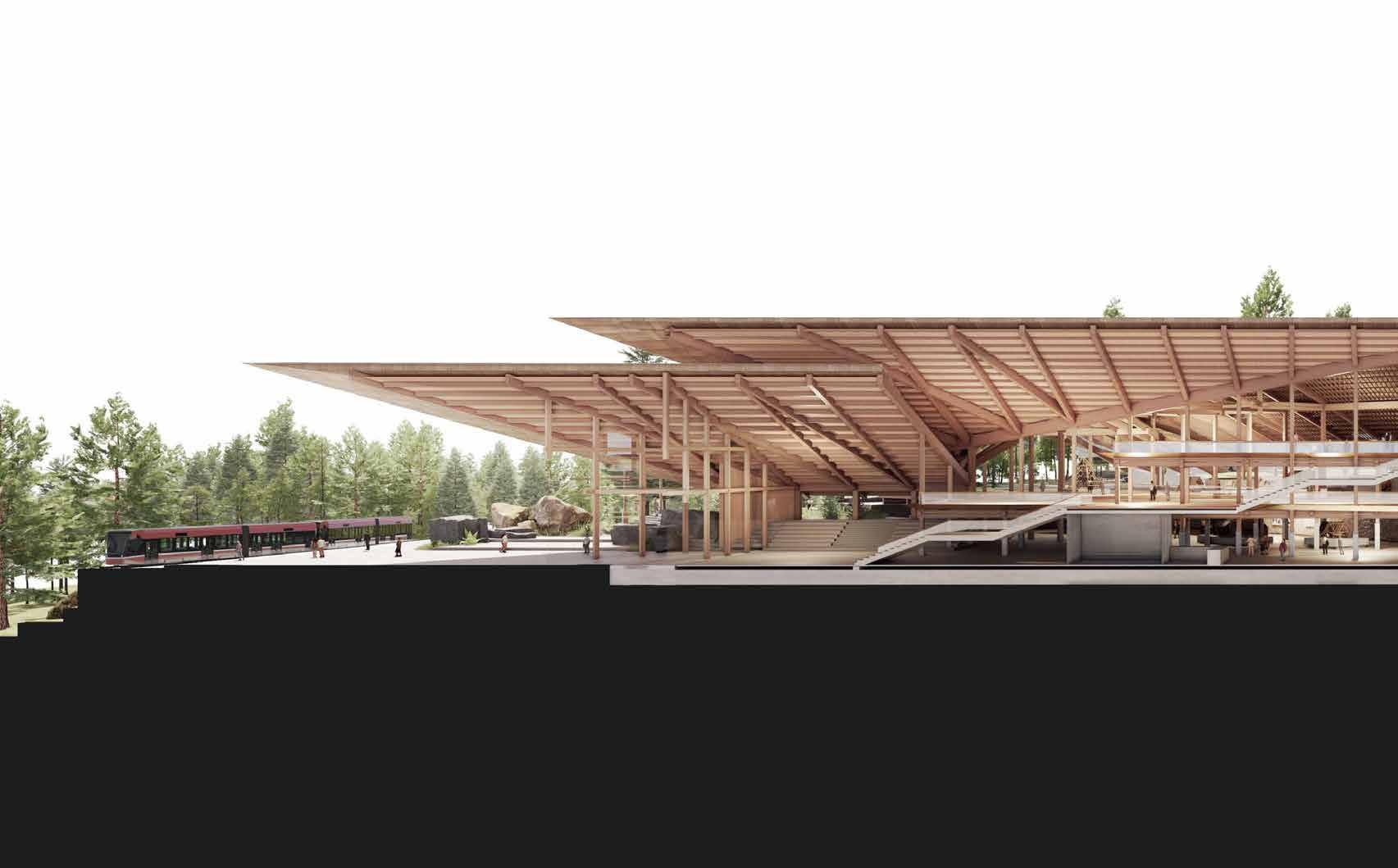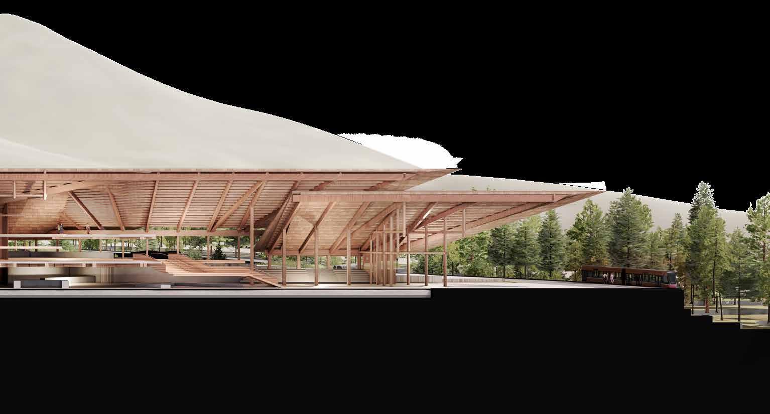 Merging the representational and cultural with the infrastructural, it offers a programmatic fusion. As such it re-imagines the folk, civic, monument, and acts as a showcase of contemporary application of folk architectural principles.