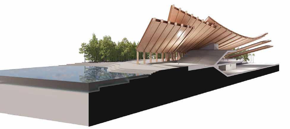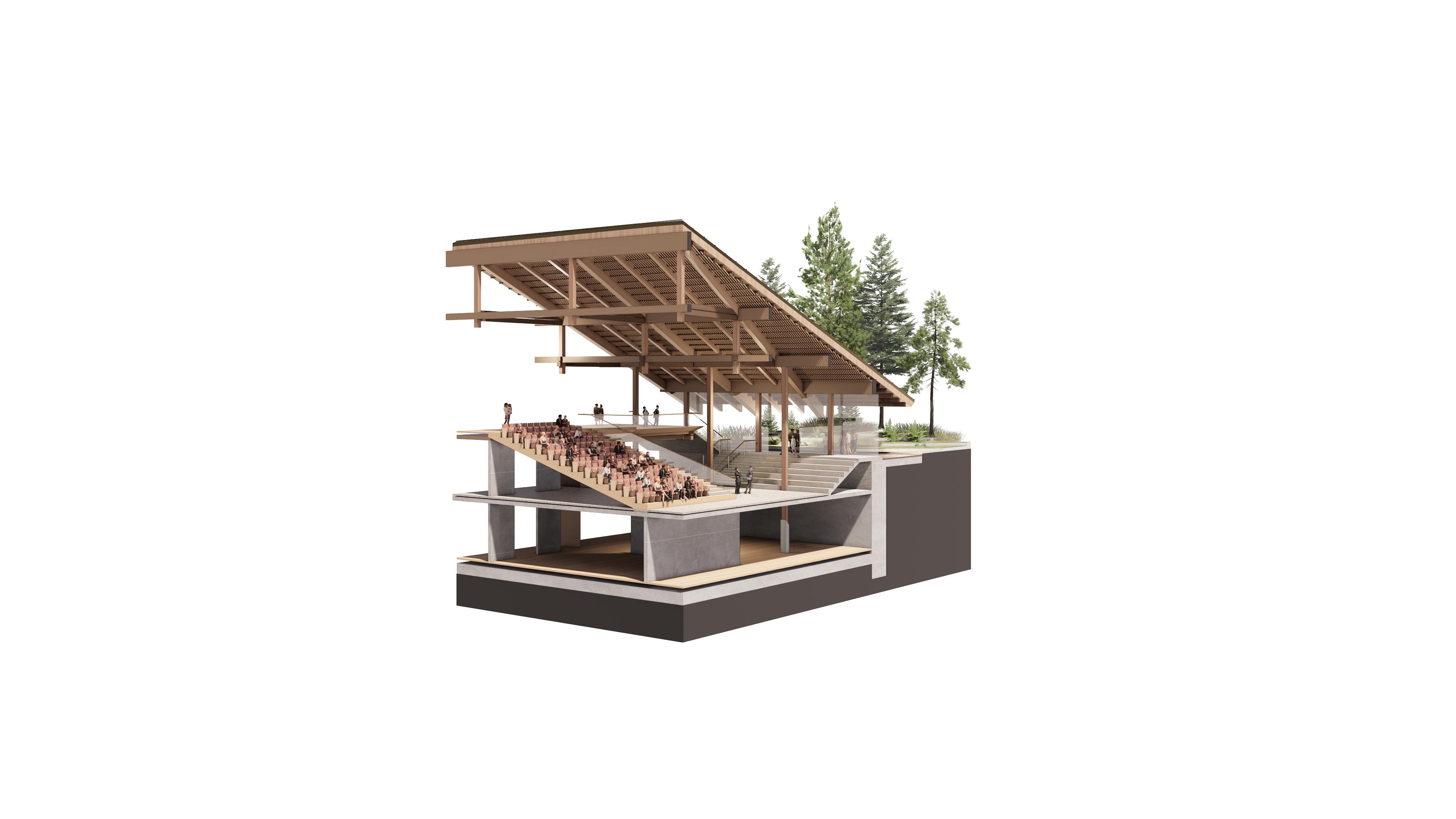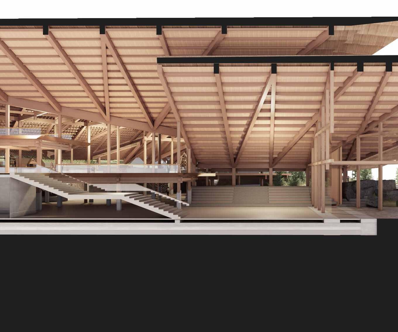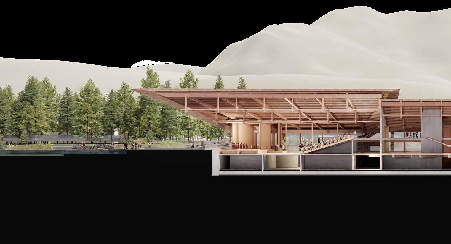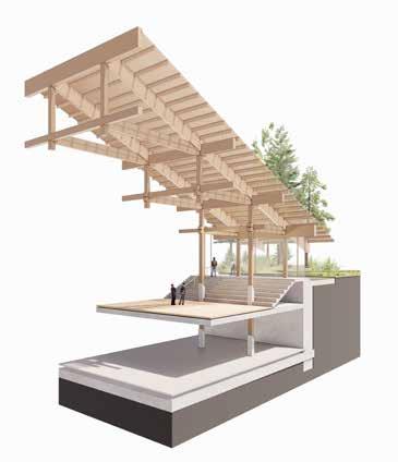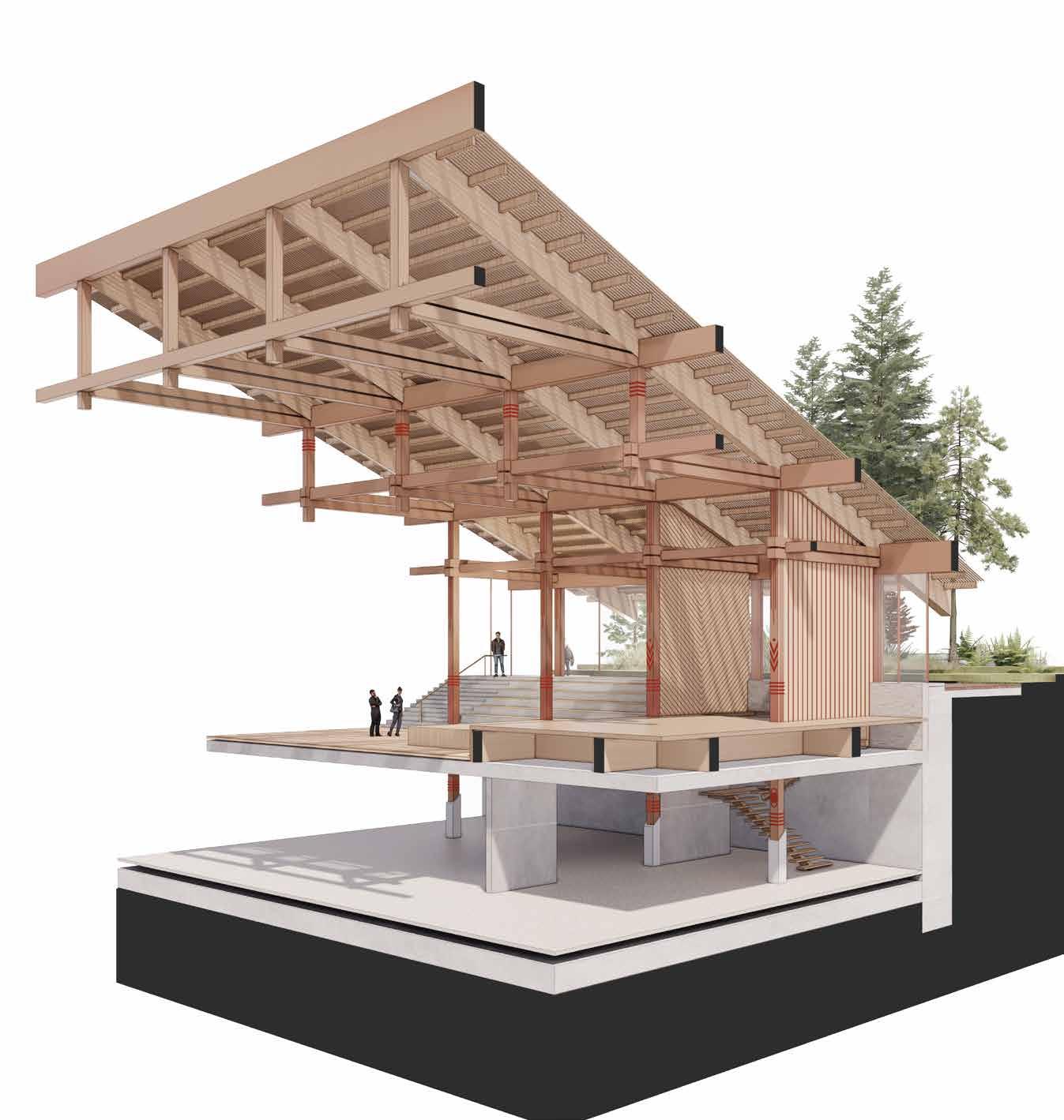 Merging the representational and cultural with the infrastructural, it offers a programmatic fusion. As such it re-imagines the folk, civic, monument, and acts as a showcase of contemporary application of folk architectural principles.