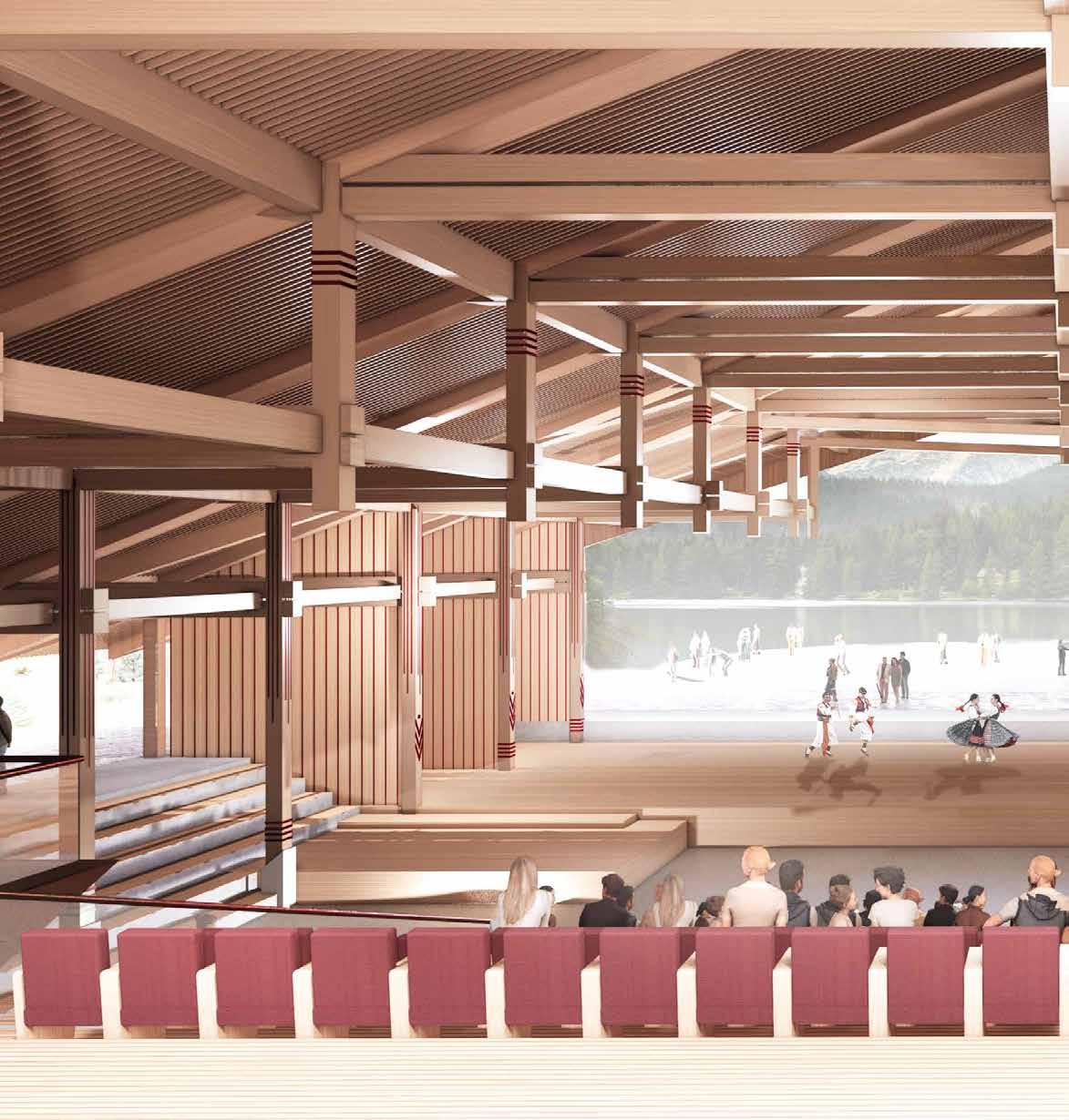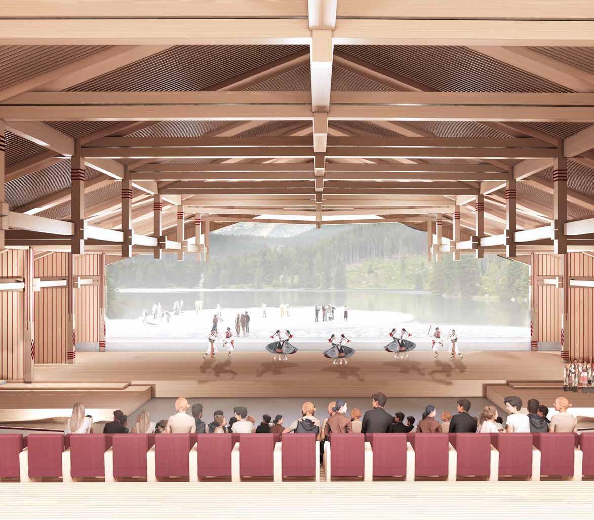 Architecturally, the design is shaped by the analysis of folk typological archetypes, playing with their defining formal characteristics. As a significant intervention into the site, it is both infrastructurally and socially transformative – a showcase of contemporary architectural expression rooted in its folk tradition.
