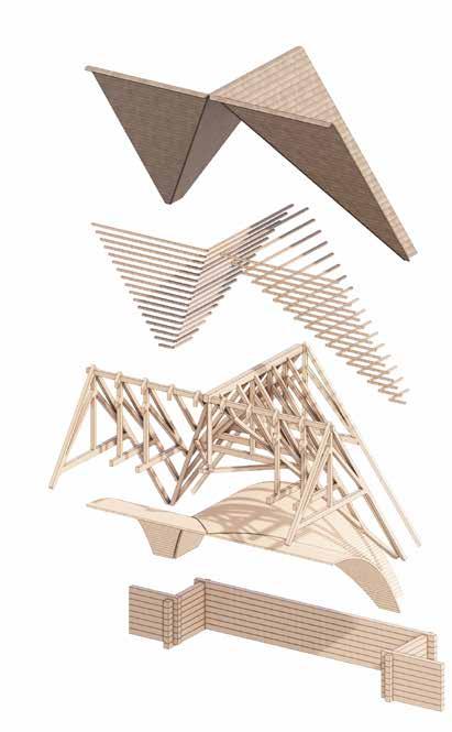 Study of planar and non-planar structural solutions with varying forms of assembly and construction; from traditional lumber to GLT, CLT and steam-bent components.