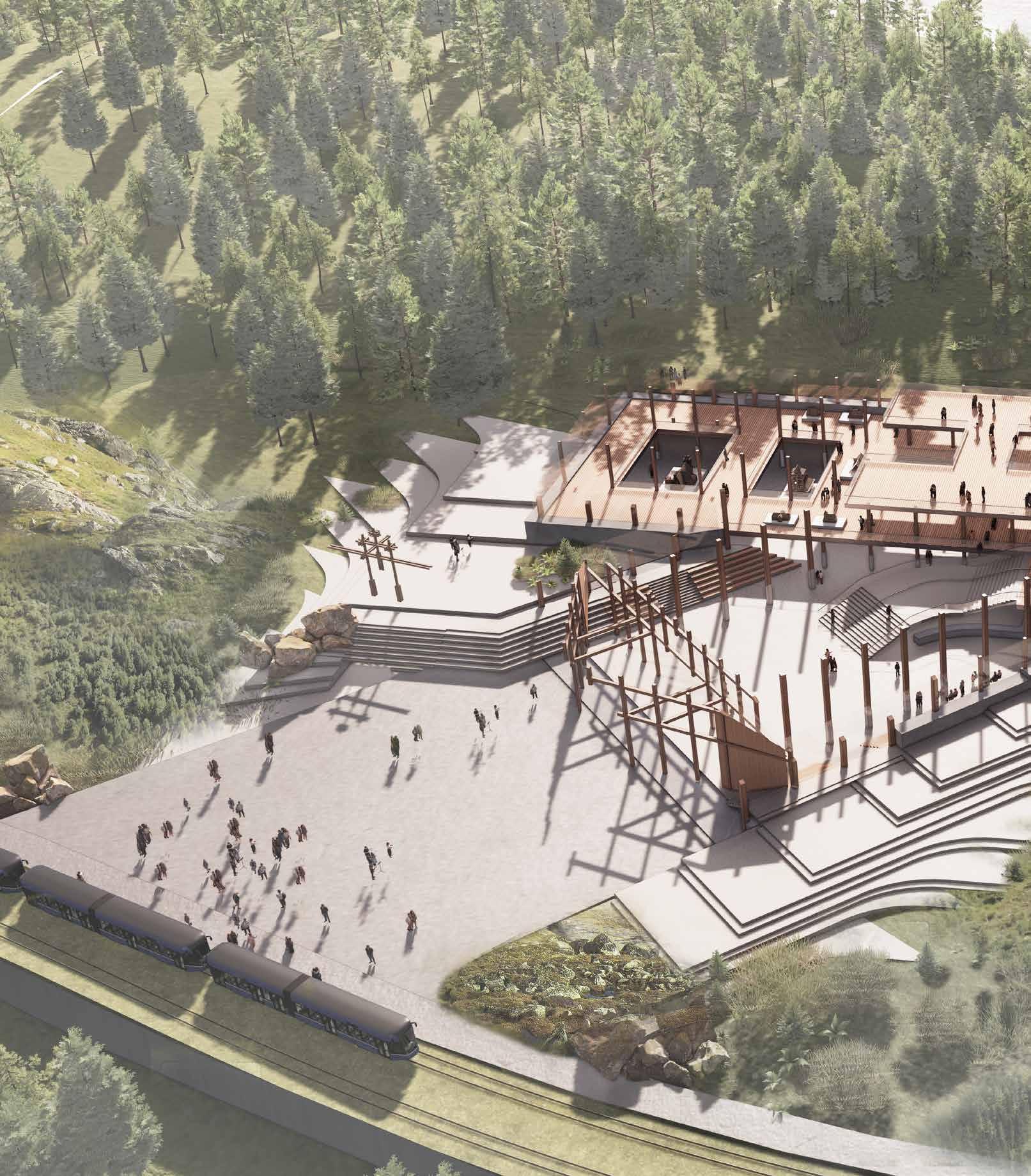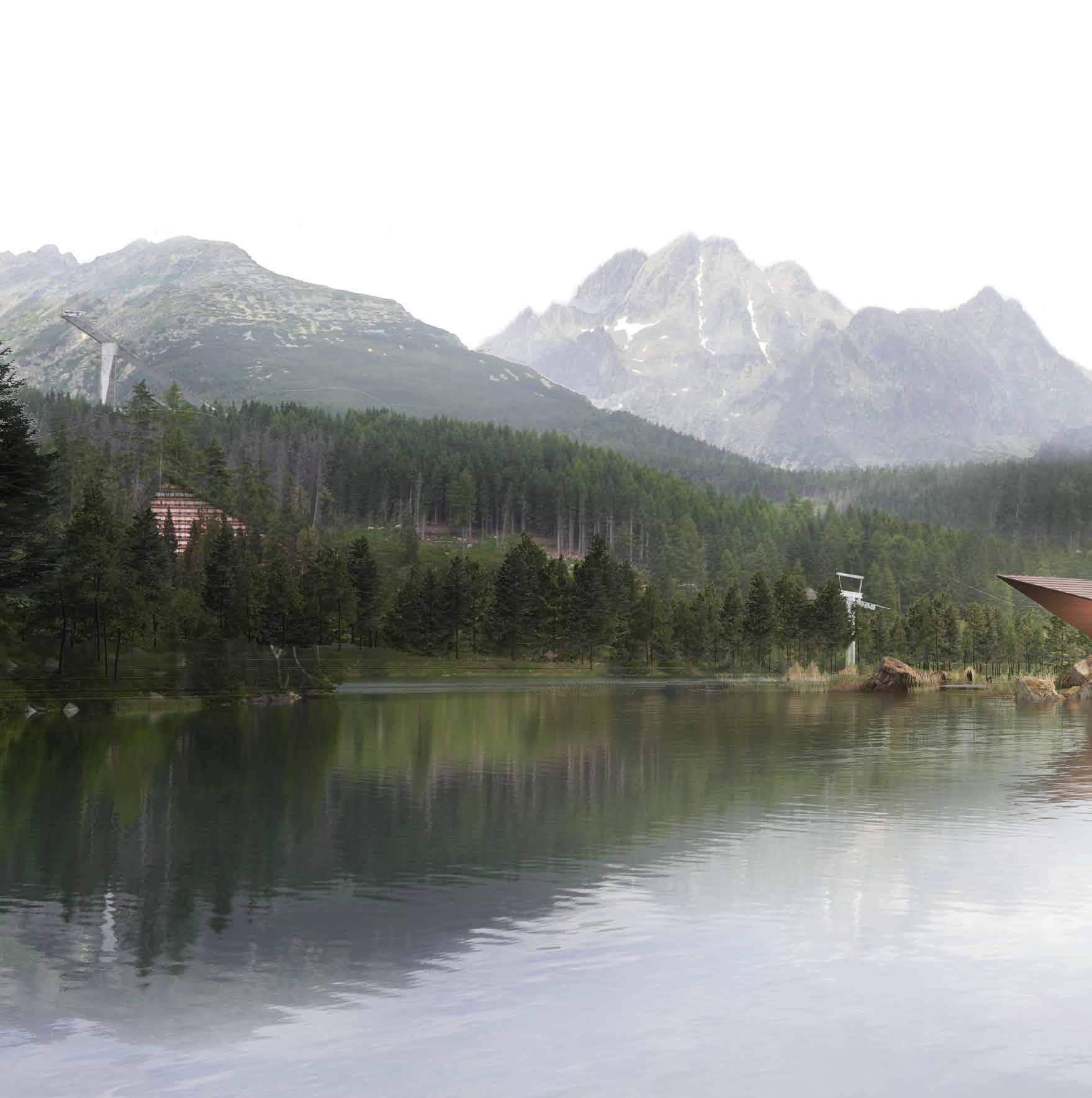 Situated in the context of an ongoing cultural crisis, the proposal creates a representational monument, by the mountain lake of Štrbské Pleso, Slovakia.