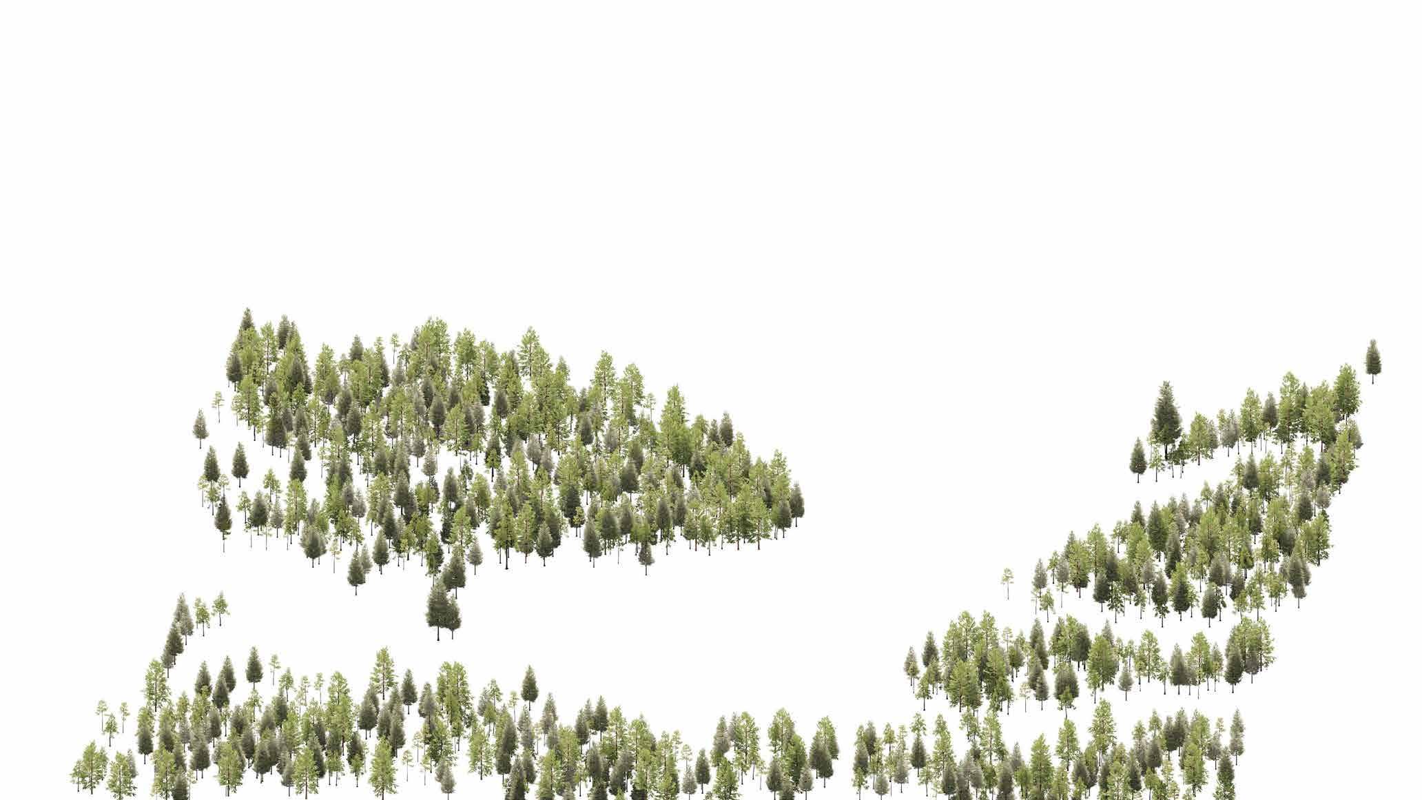 Taller, slender trunks and root systems enable trees to grow closer together