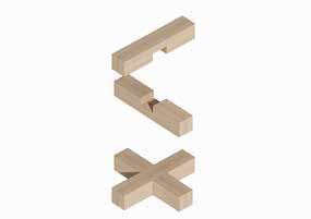 components lapped together using hardwood dowles instead of steel, referencing the traditional joinery of the region.