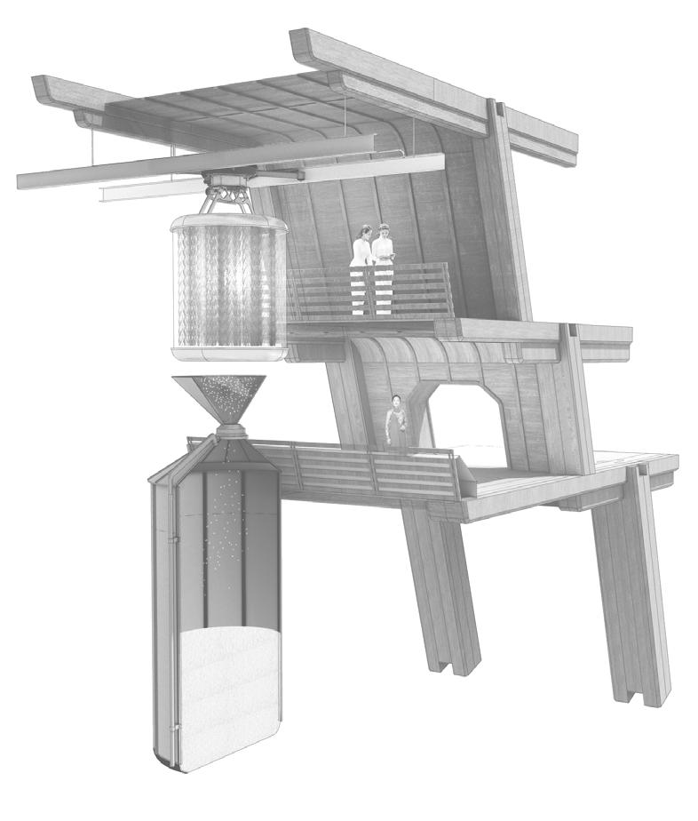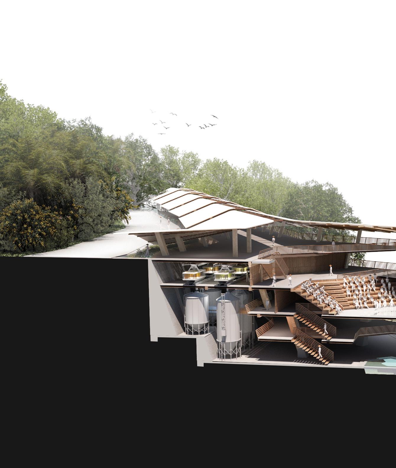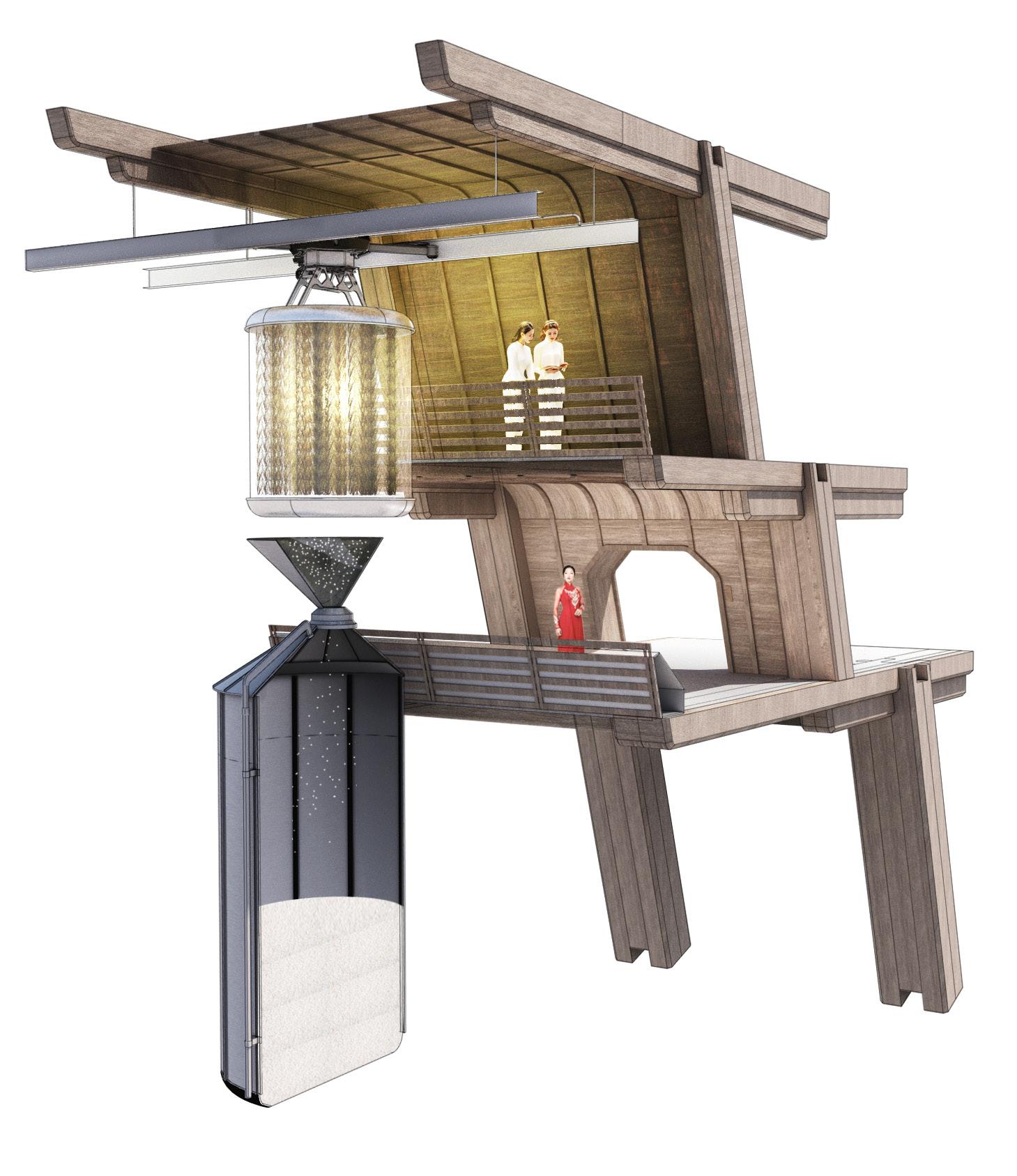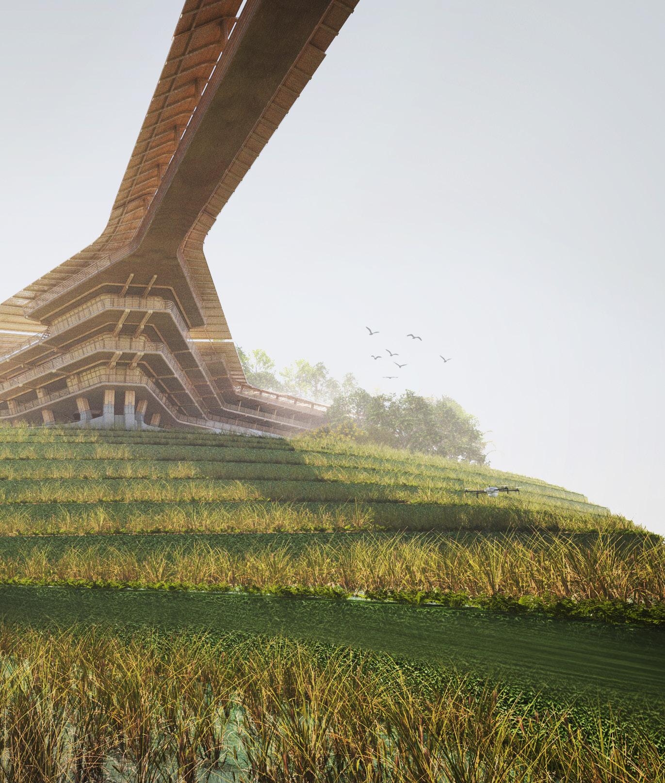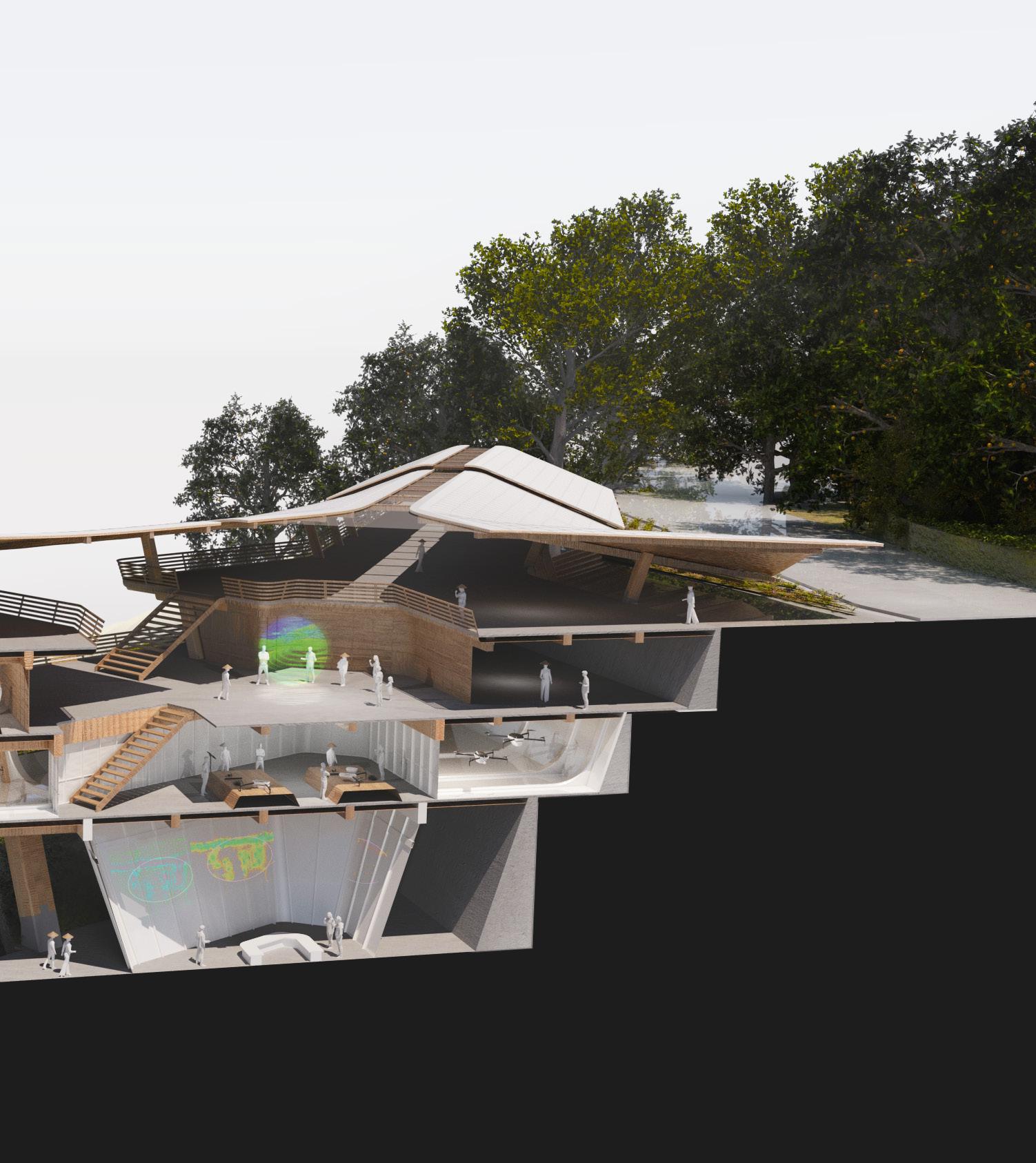 At the heart of the design is the integration of agritech, which revolutionises traditional farming practices and empowers local farmers with innovative tools for land management. By harnessing the power of automated systems to care for the land, a symbiotic relationship is created between nature and civilisation, where the bounty of the earth sustains and enriches the lives of Vietnamese folk living above.