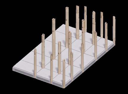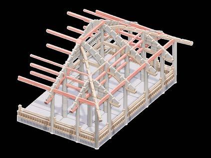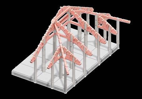 2. Beams and box rafters are installed on top of the columns creating the main frame.