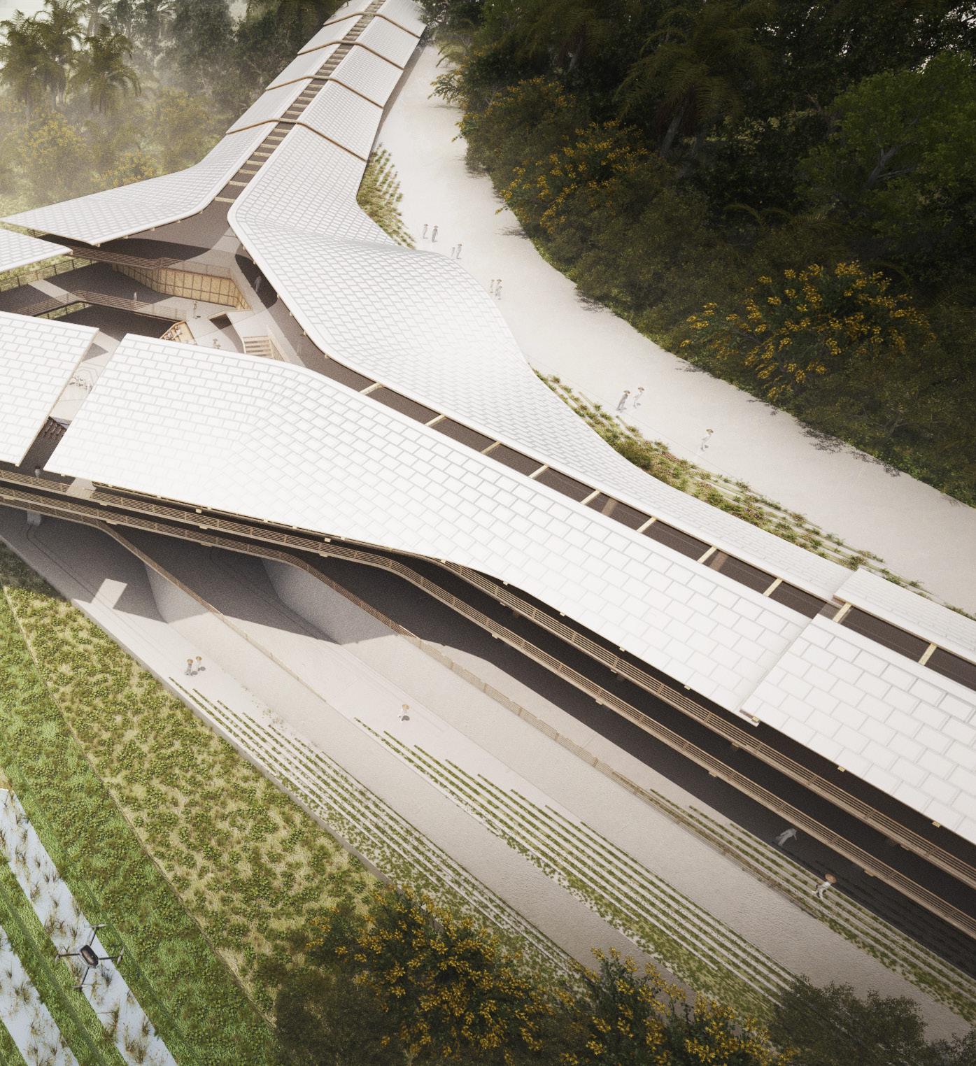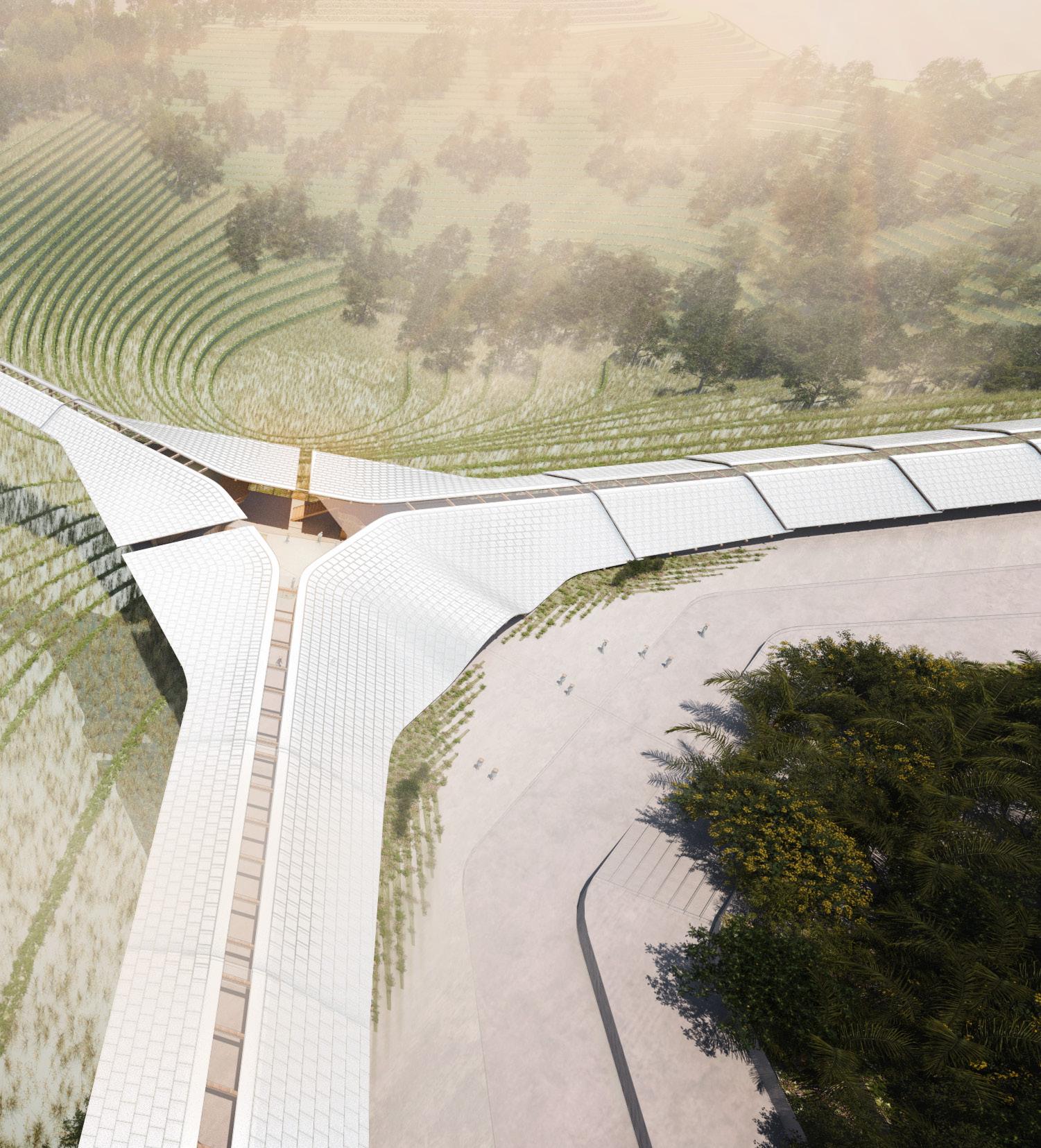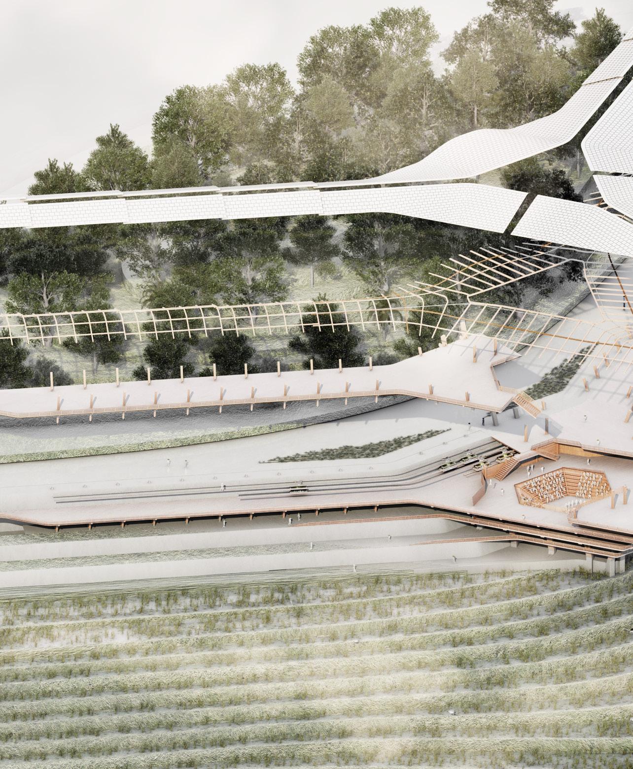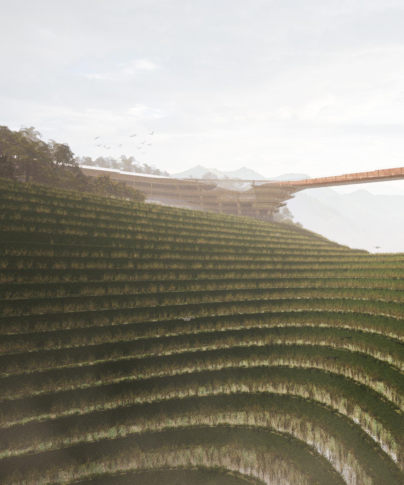 Located amidst the picturesque mountains of Sapa, Vietnam, the design prioritises sustainability and connection along the strata of the mountain terrains that connect back into a vibrant plaza. The project aims to blur the lines between urban infrastructure and nature, harmonising land cultivation with rural life rhythms.