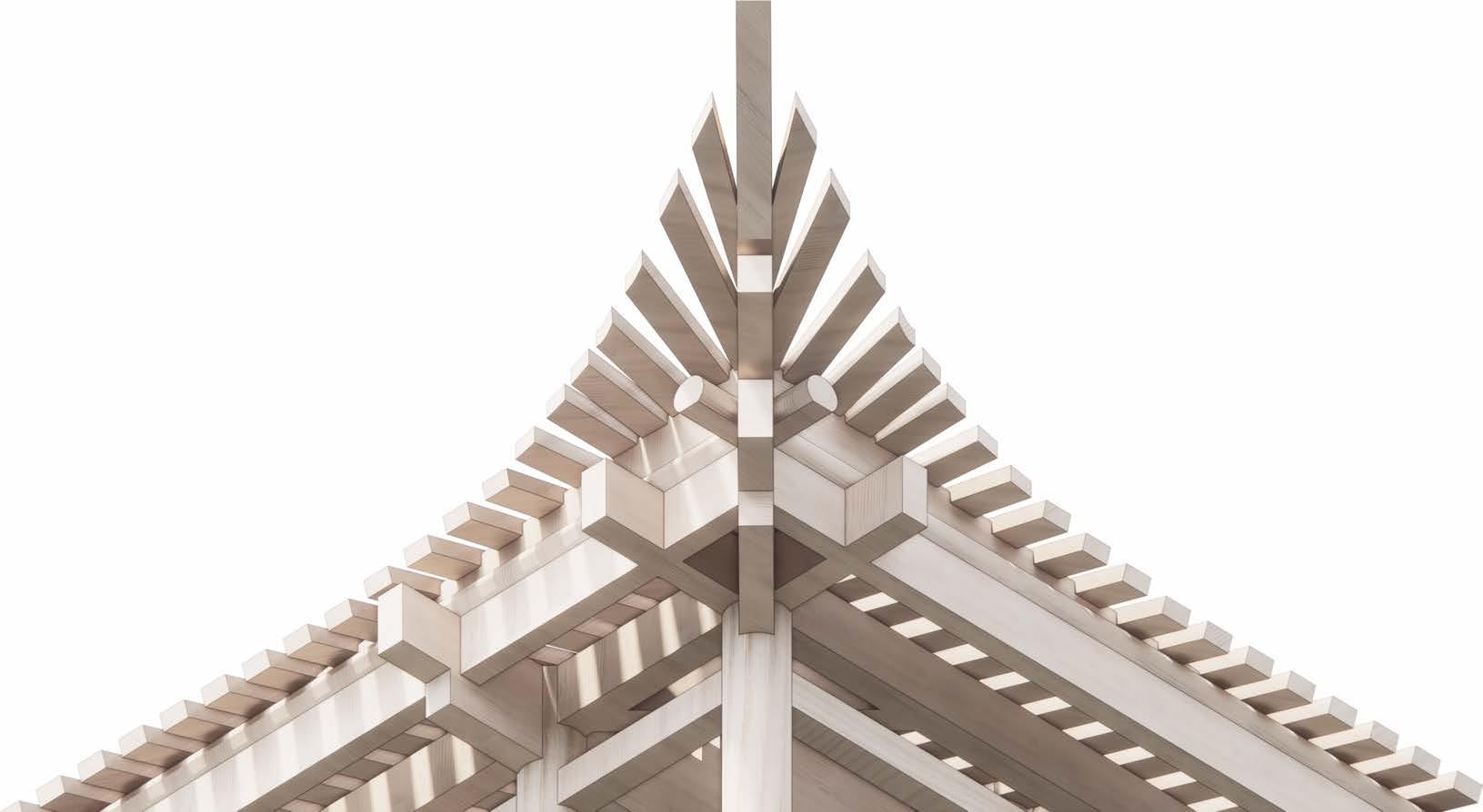The flying eaves on the other hand apply similar principles to the dragon brace but to create an expressive corner,