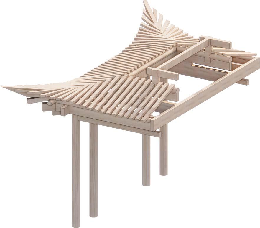 In the development of this fragment, the eaves focus on the on creating sharp shading on the different levels. I intended on exporing how this branch can join and align multiple different branches to create different arrangement of eaves.