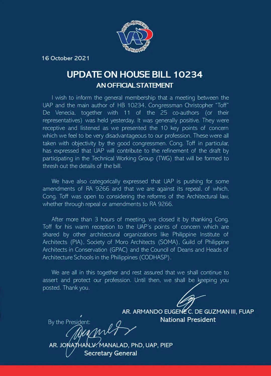 An OFW for a decade but still a devoted Filipino architect who serves as a Director in Programs & Development and Chairman of Professional Practice and Development Committee for Bahrain Chapter Fiscal Year 2021 – 2022.