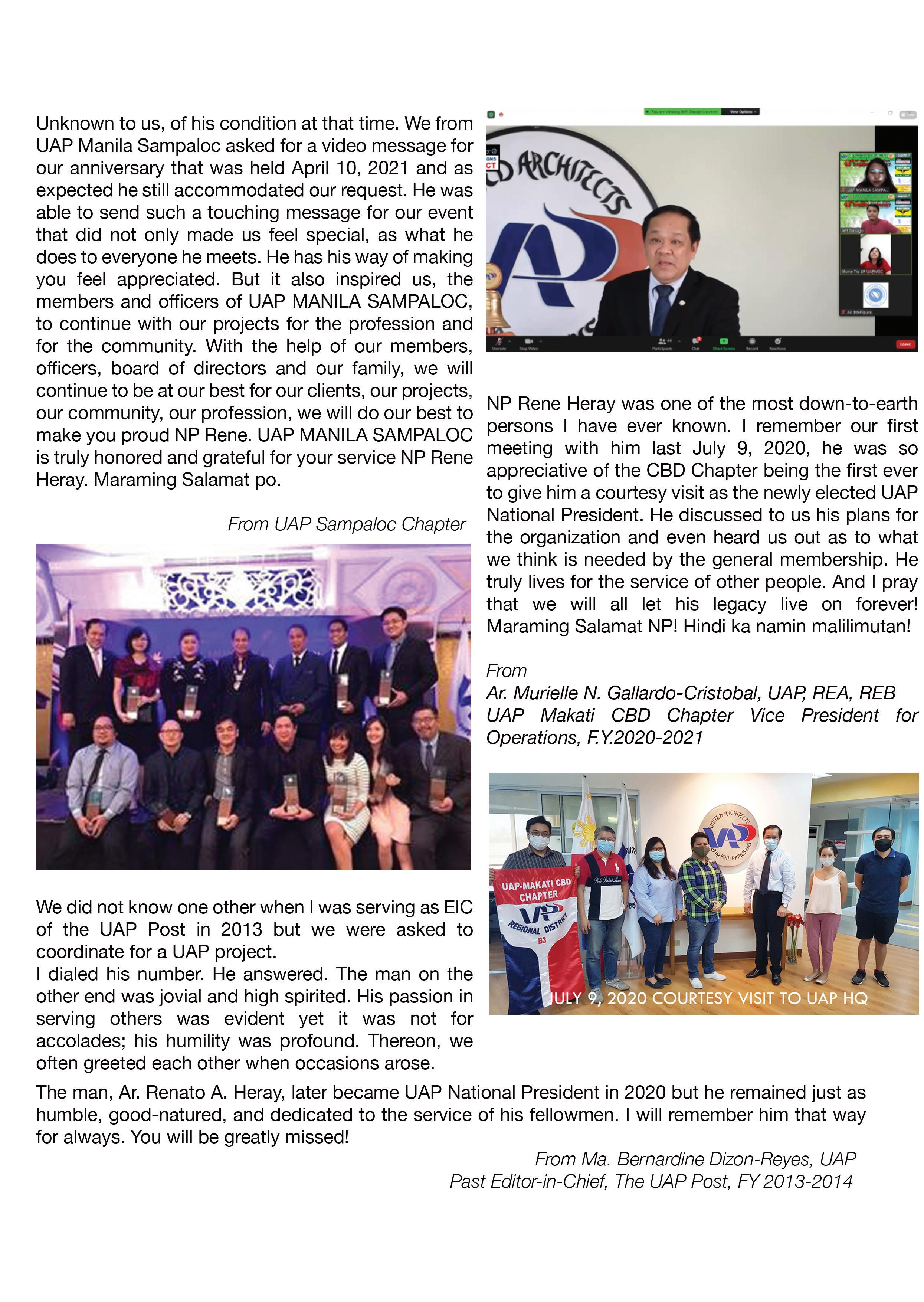 The UAP Publication has always been resilient in getting a fair stance and showcasing Filipinos’ lives in connection to architecture. Behind all of this are the ever-dedicated members of the committee that have consistently contributed innovative new ideas to the entire publication. With years of expertise with the publication, it was a lifetime opportunity.