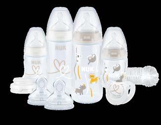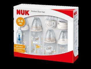 Optimal nourishment is the best prerequisite for a successful start in life. The NUK First Choice+ Perfect Start Set offers the optimal basic set with four (2x 150ml and 2x 300ml) NUK First Choice+ baby bottles made of polypropylene with temperature control. Completing the set are two extra NUK First Choice+ silicone teats, a NUK Genius soother made of silicone that is right for the jaw, a leakproof screw top and a practical NUK bottle brush. So you and your baby are perfectly equipped for the initial period!