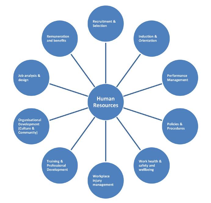 Human Resources articles in subsequent editions of Dollars & Sense will have specific focus on the various circles, shown in the figure to the right, which makes up the scope of human resources management and work health and safety practices.