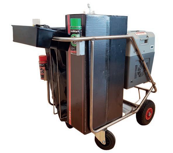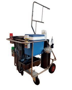 Handy trolley with room for Stimulus, thermobox and catheters.