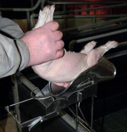 Insemination hanger for sows. Improves and speeds up insemination of sows.