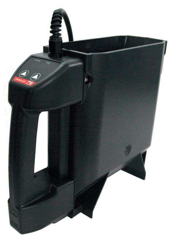 Insemination trolley with temperature-controlled climate box for semen. The box is supplied with power from the battery during the insemination work, subsequently it can be connected to 220 volts.