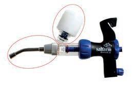 After having mounted the 3 Stimulus the first sow will be ready for the actual insemination where the catheter and semen bottle is put in place – the semen bottle – tube or flat pack – can rest in the special holder which is placed at the end of the “antennas” on Stimulus.