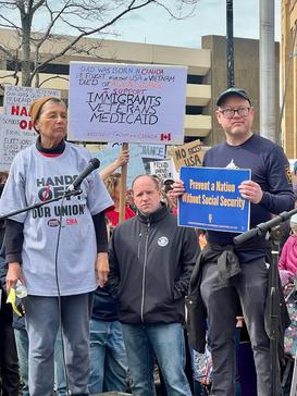 U.S. Rep. Mark Pocan (D-WI) spoke at the rally, saying his office is receiving thousands of weekly calls from constituents outraged by the cuts. “People are pissed,” Pocan said. “They’re upset about the VA, SSA, Medicare, Medicaid and they’re ready to fight back.”