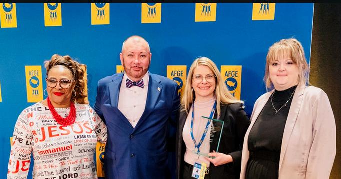 JessicaLaPointe,Presidentof AFGECouncil220andVice PresidentofLocal1346atthe SocialSecurity AdministrationinAFGE District7,hasbeenawarded theprestigiousMember MobilizationAwardforher outstandingcommitmentto organizingAFGEmembers aroundcivil,human,and worker'srights.