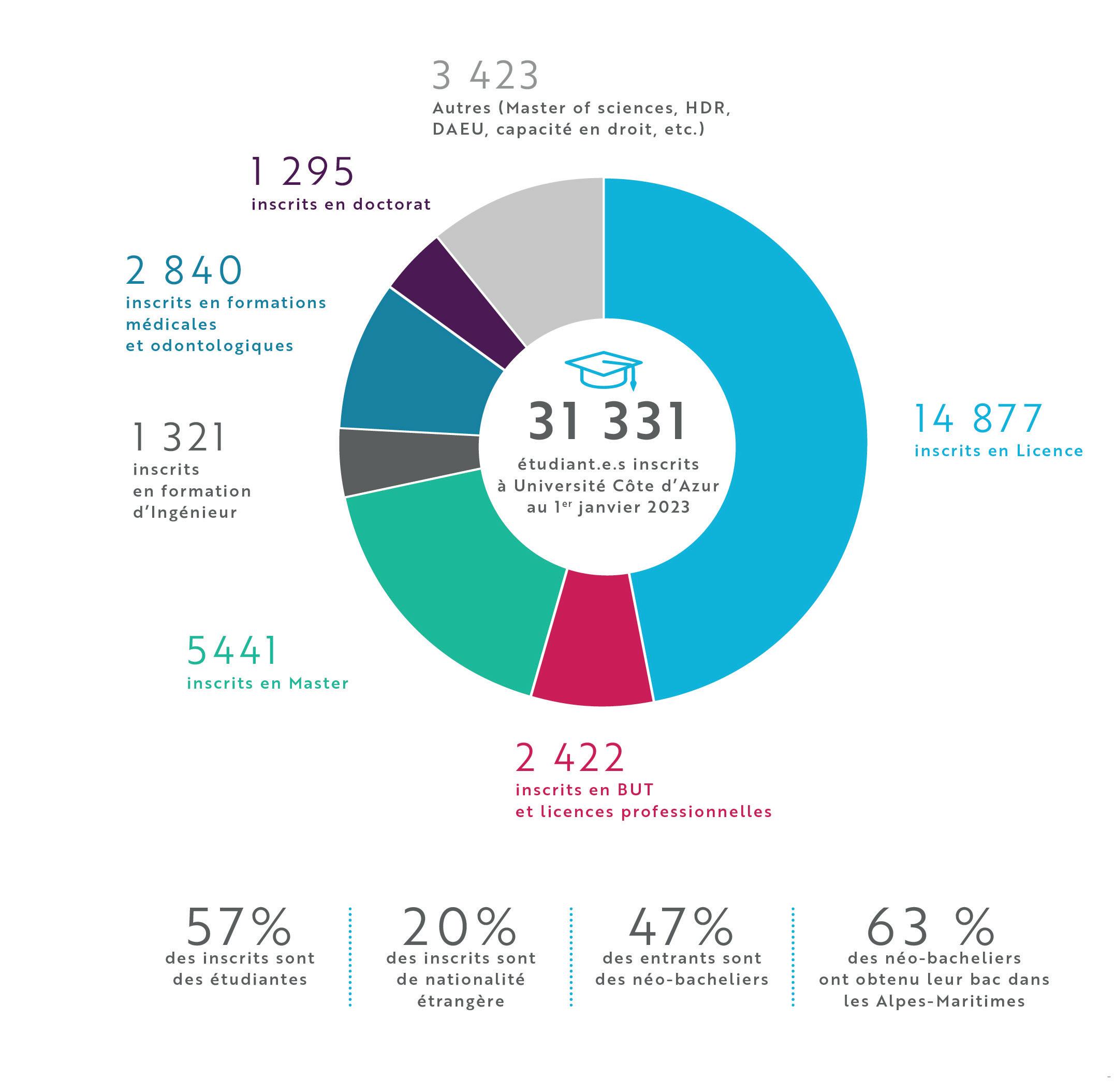 dont 1600 enseignants/chercheurs, 1200 administratifs auxquels se rajoutent environ 1800 intervenants en formation et les collègues chercheurs CNRS, INSERM, OCA, INRIA, INRAE...