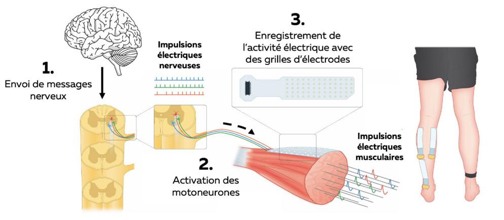 Our brain controls most of our movements by sending nerve signals in the form of electrical impulses to our muscles. These nerve signals are transmitted via motor neurons (or motoneurons) which connect the spinal cord to the muscle fibers. Recent advances have made it possible to decode the electrical activity of a muscle, measured by a technique called electromyography (EMG), using artificial intelligence algorithms. The measured signals can be deconstructed to isolate the activity of particular motor neurons, providing information on the nerve signal transmitted via the spinal cord. The spinal motor neuron is the only neuron in the human body whose electrical activity can be measured non-invasively, that is, without penetrating the skin. This information could