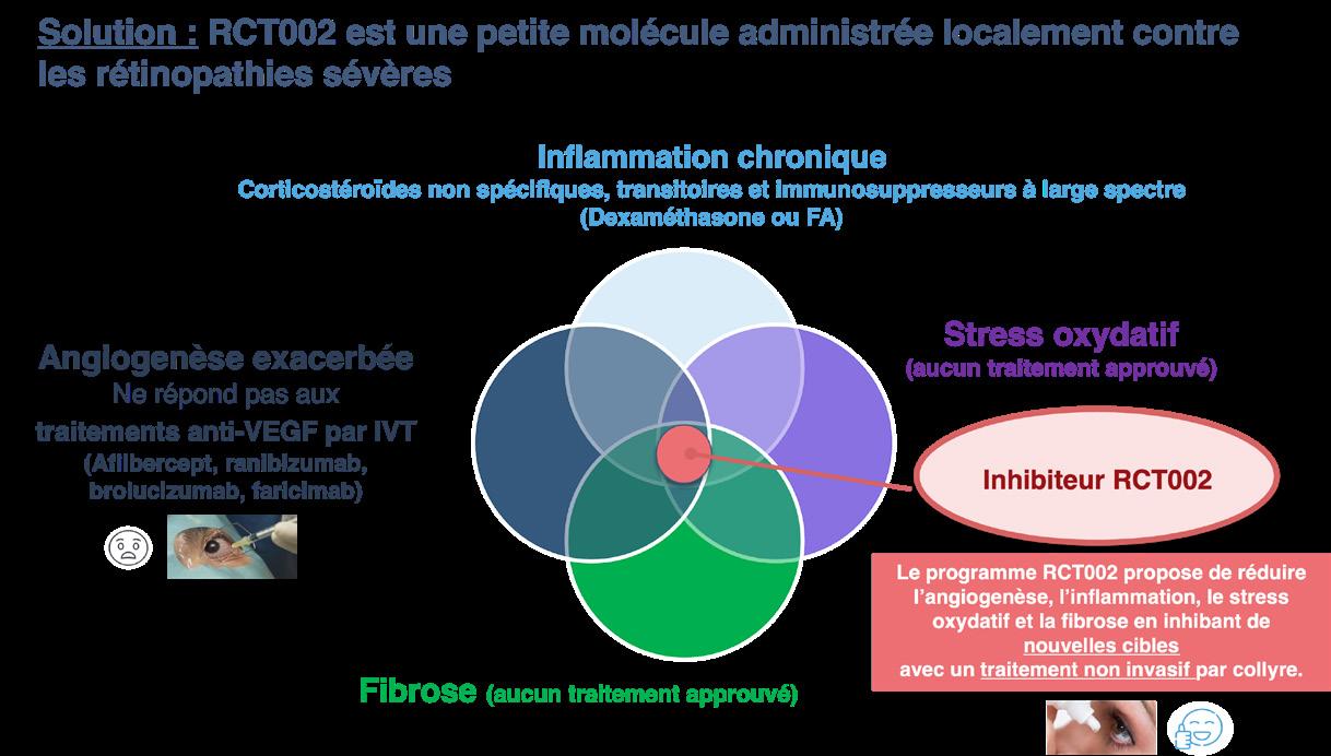 protonthérapie du mélanome uvéal. Cette approche repose sur le développement d’inhibiteurs capables de neutraliser les mécanismes responsables de la maculopathie radique. Afin d’optimiser son administration, l’équipe a mis au point une formulation spécifique permettant une application topique oculaire sous forme de collyre. Ce médicament révolutionnerait la prise en charge des patients traités actuellement par des injections intravitréennes d’antiVEGF partiellement efficace et traumatisantes.