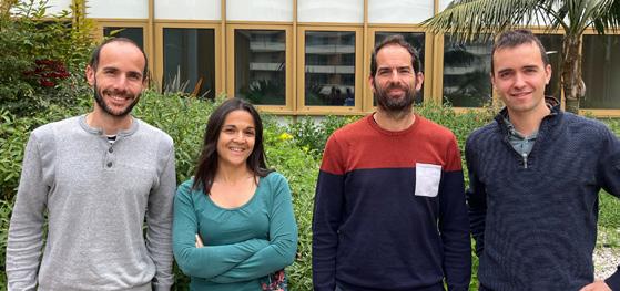 De gauche à droite: François-Xavier Gauci (doctorant Université Côte d’Azur), Céline Cohen (MCF UniCA), Xavier Noblin (DR CNRS) et Ludovic Keiser (CR CNRS).