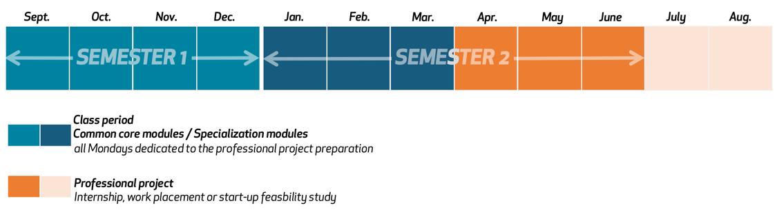 To get involved in the professional world, students develop pluriannual projects with professionals of the public private sectors They prepare their internship in semester and use extra- time in semester 3 to value their work coach the one taking over the project This experience connects them together and with professionals in the field of their choice