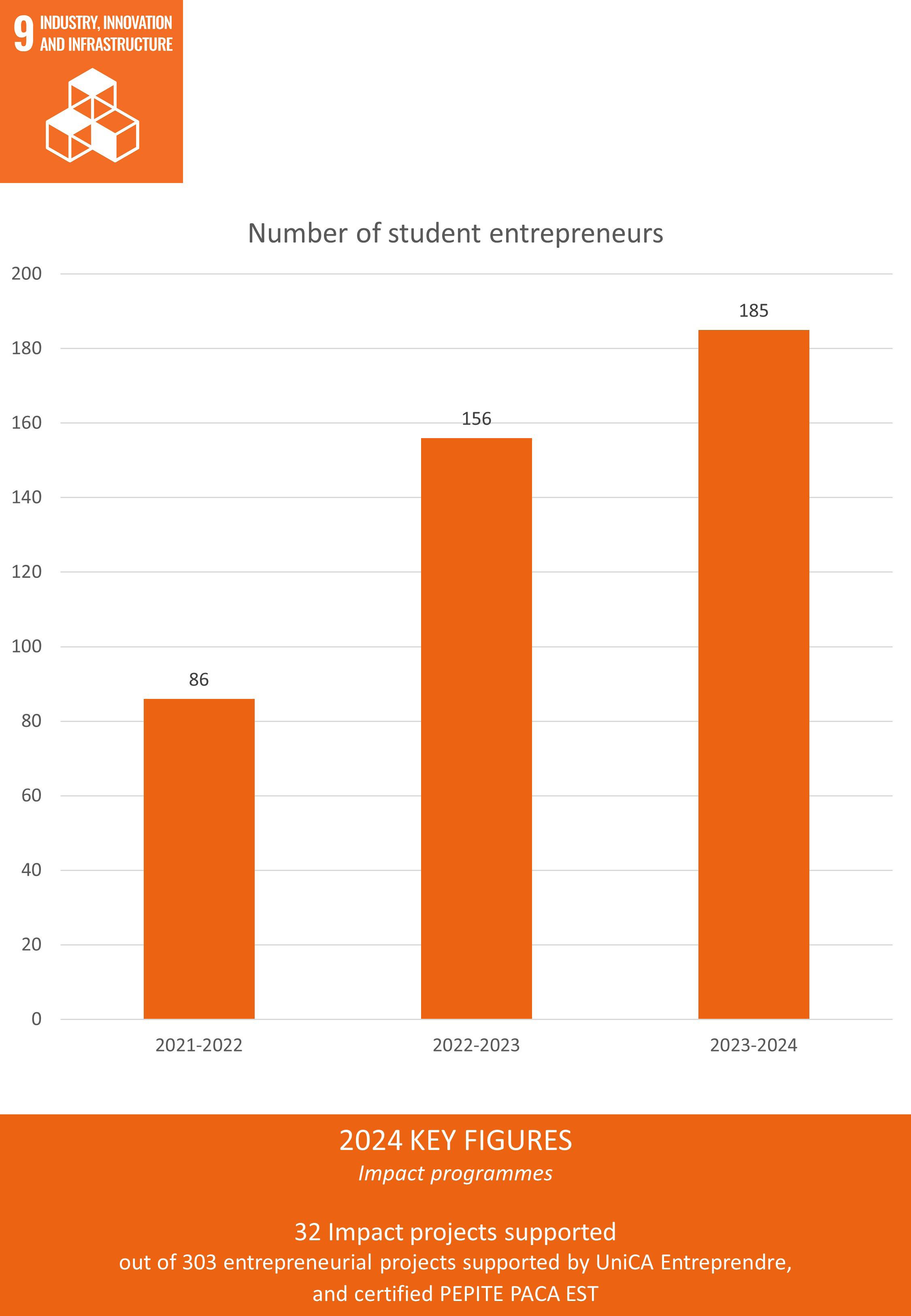 Each year, UniCA Entreprendre supports hundreds of entrepreneurial projects through four programs adapted to different levels of maturity. In 2024-2025, 303 student projects were supported (it was 280 the previous academic year), including 32 identified as “High Impact Projects”. Almost 6000 students and researchers (5984) were sensitized to sustainable entrepreneurship in 71 events throughout the year.