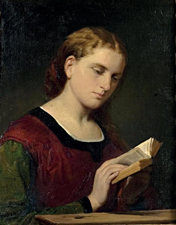 Sopra, Pagliano, Il libro di preghiere, olio su tela, Musei Civici Varese. Nell’altra pagina, sopra, Bertini, Ofelia, olio su tela, Musei Civici Varese; sotto, Hayez, Imelda de’ Lambertazzi, olio su tela, Musei Civici Varese