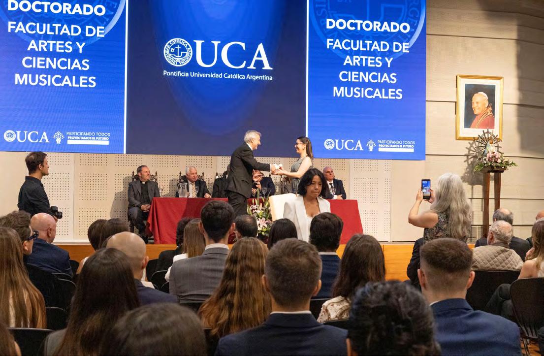 sedes (Buenos Aires, Mendoza, Paraná y Rosario), así como los reconocimientos a los flamantes doctores de la Universidad.