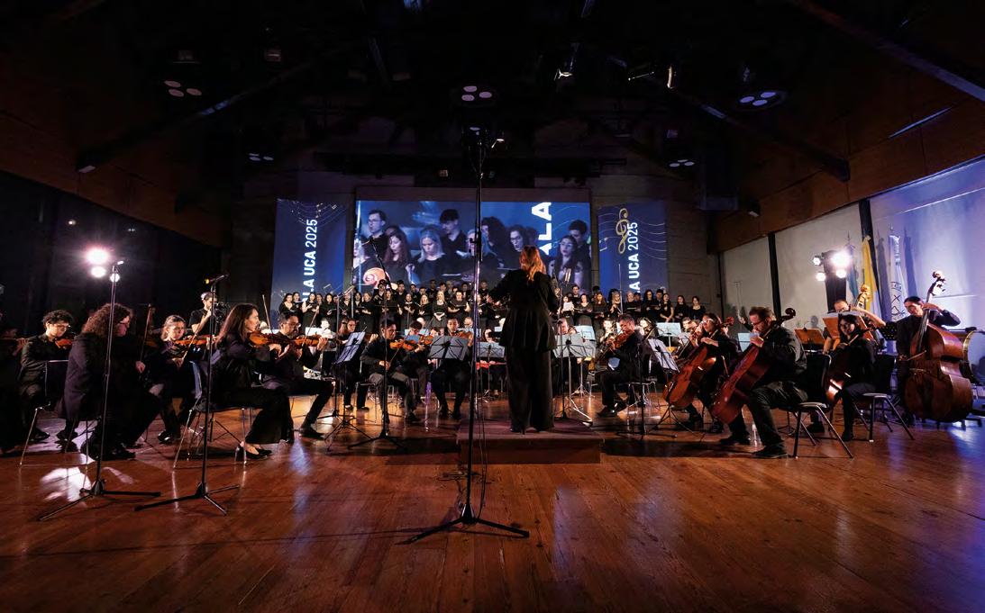 Con un emotivo homenaje al Papa Francisco e interpretaciones musicales, el 29 de septiembre se llevó a cabo en el Campus Papa Francisco la Gala UCA 2025, evento presidido por el gran canciller y arzobispo de Buenos Aires, Mons. Jorge Ignacio García Cuerva, y el rector Dr. Miguel Ángel Schiavone. Los periodistas Mariano Yezze y Mariana Arias, padre de un alumno UCA y graduada de la Universidad, respectivamente, condujeron el acto, que fue transmitido en vivo a las sedes Mendoza, Paraná y Rosario.