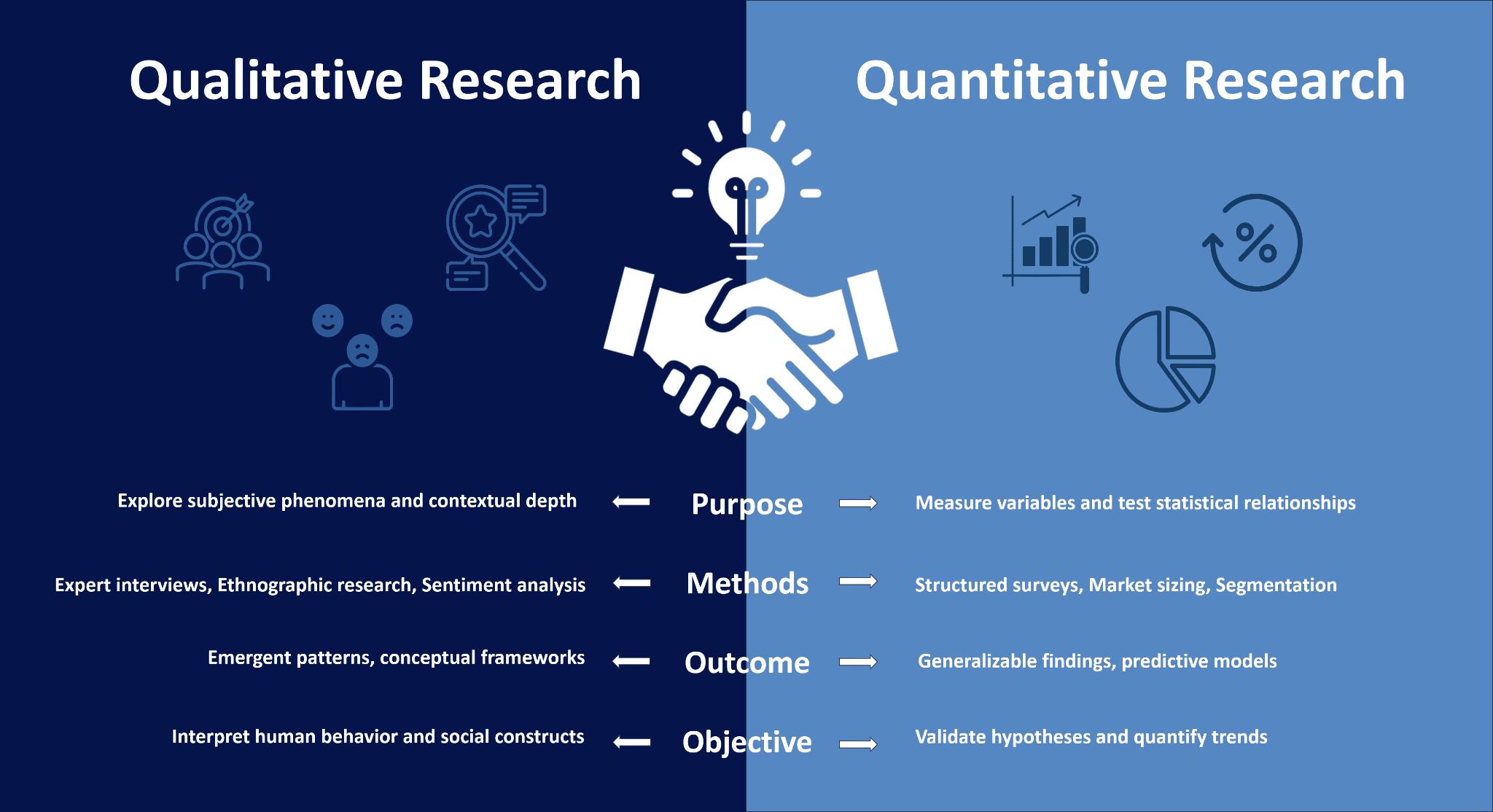 The true power of Qualitative and Quantitative Research Services is not in choosing one over the other it’s in combining both to create complete, reliable insight.