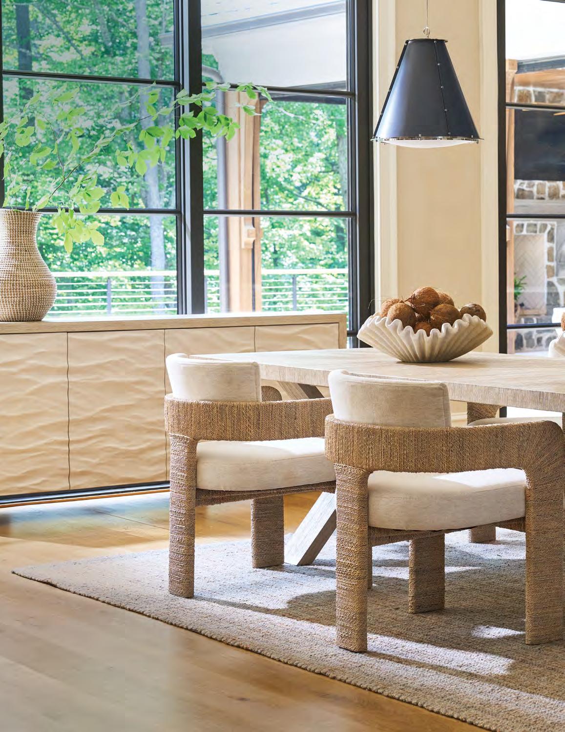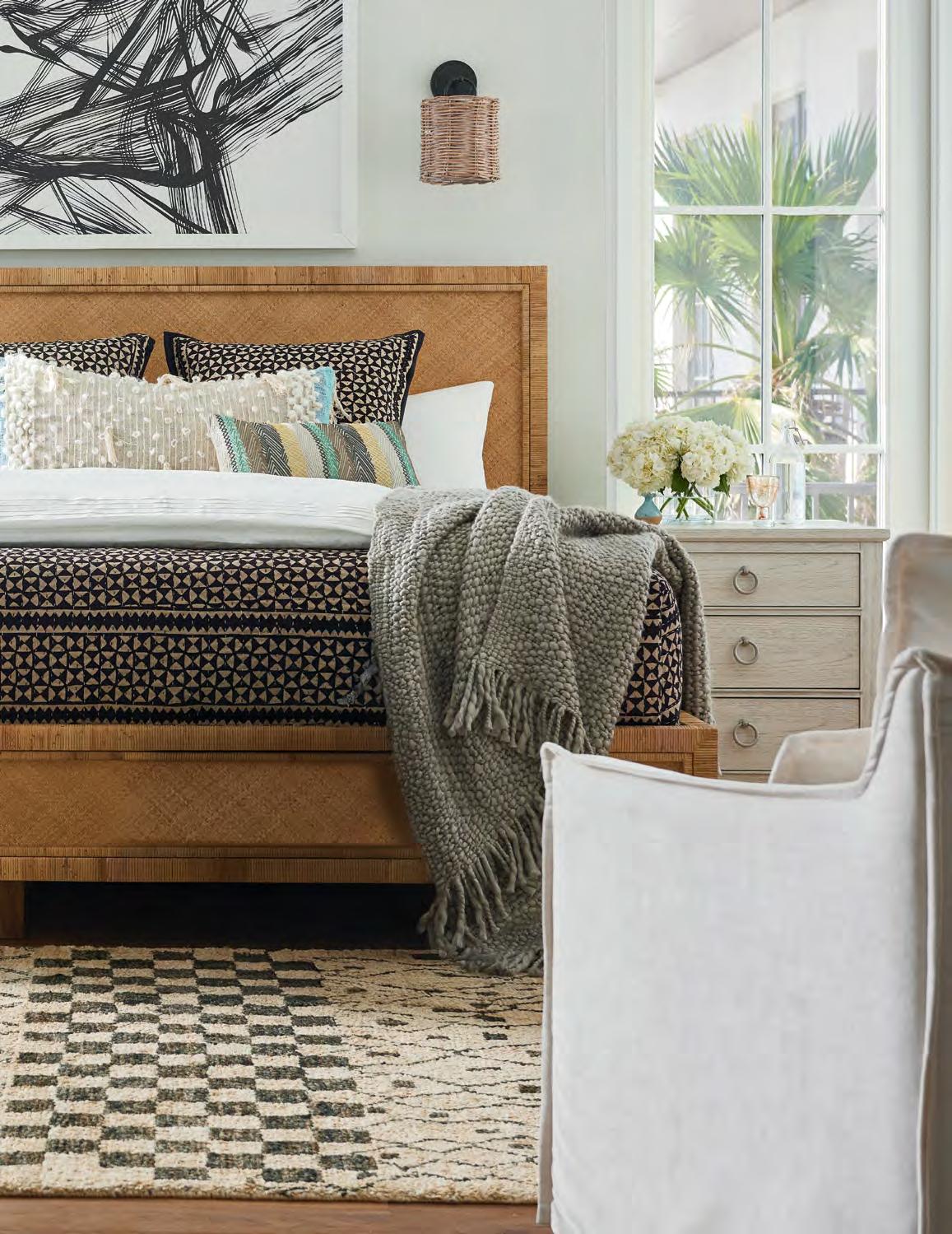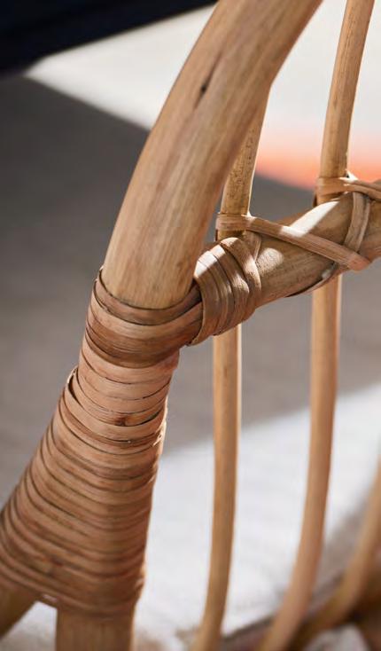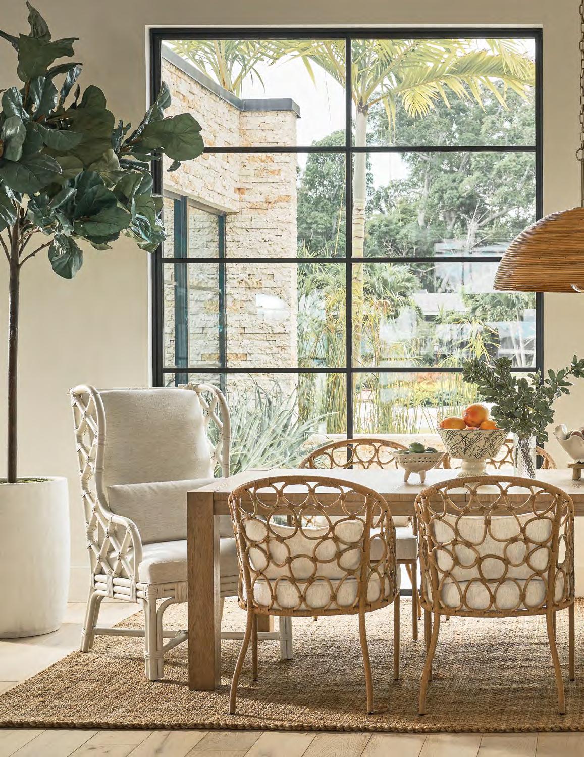 Performance Fabric: Dover Natural Pole rattan, split rattan, and woven wicker. Shown on pages: 53, 59