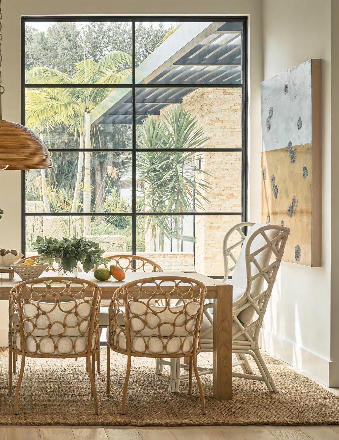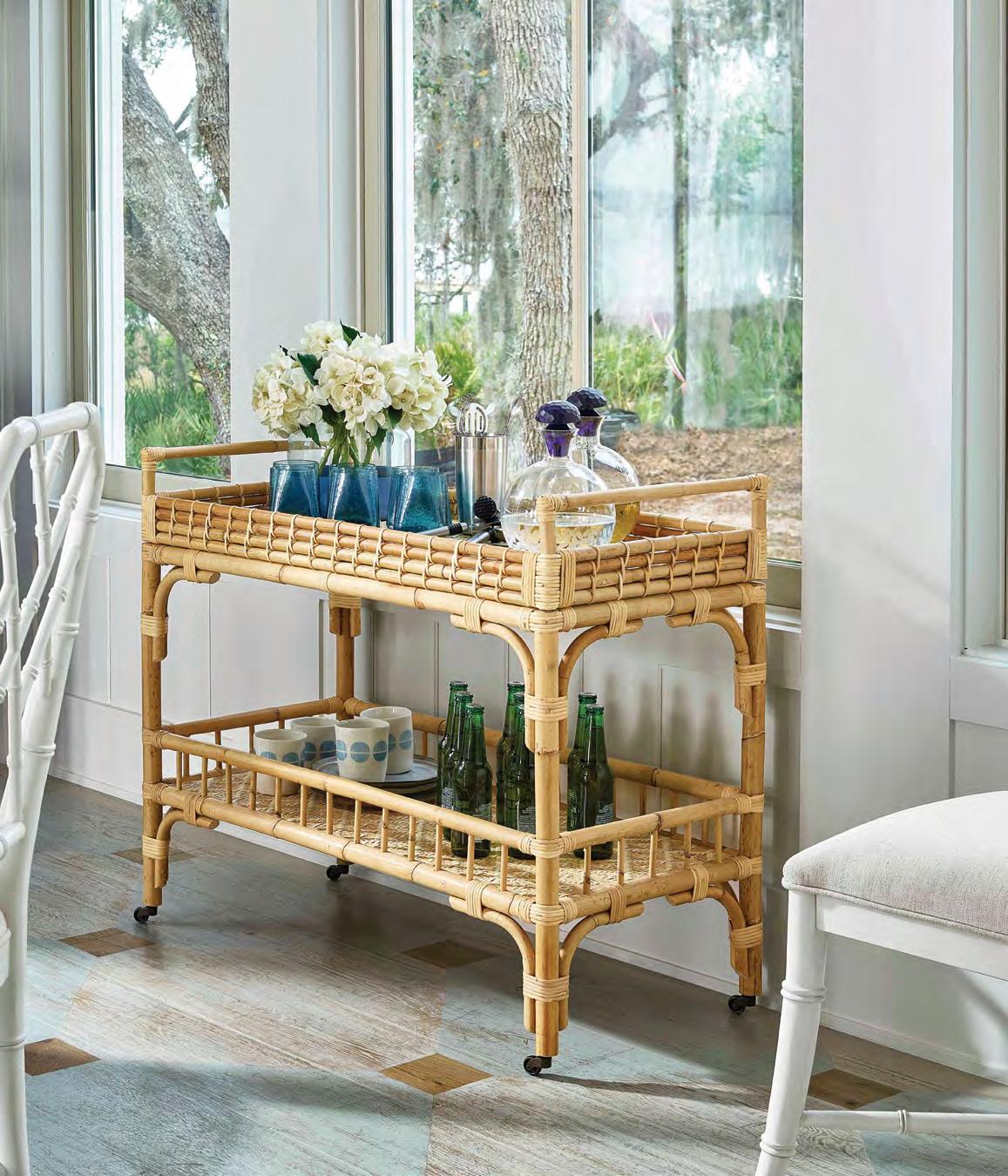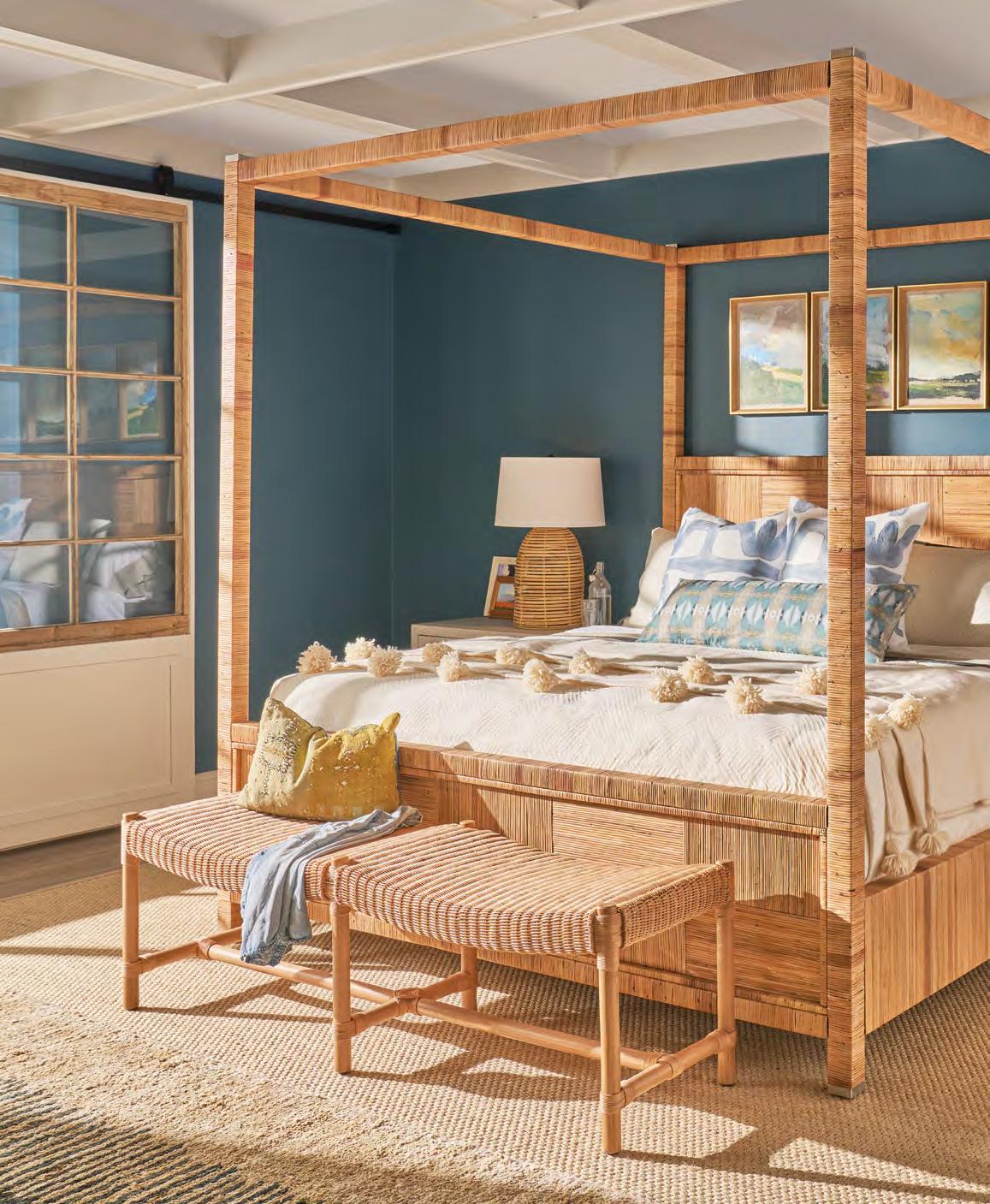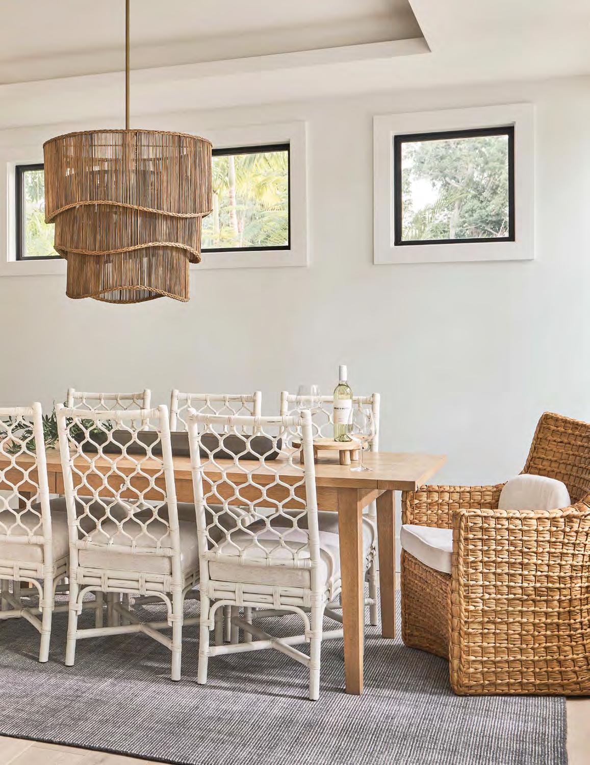 Performance Fabric: Dover Natural Pole rattan, split rattan, and woven wicker. Shown on pages: 53, 59