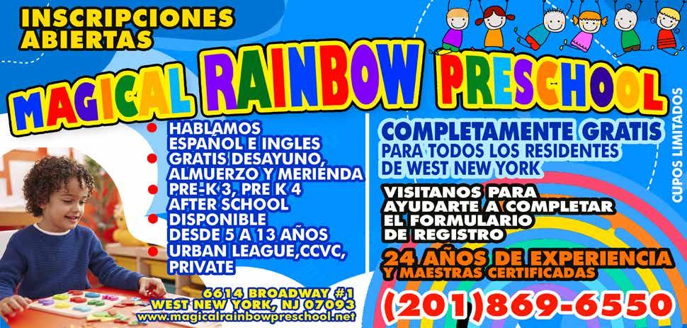 El objetivo de Magical Rainbow Preschool es proporcionar un entorno hogareño mientras sus hijos se encuentran en la escuela. El objetivo principal es preparar y facilitar a los niños que se van de casa por primera vez a este nuevo entorno. Ofrecemos clases pequeñas y en proporciones ideales de alumnos por cada maestro, lo cual permite que los maestros tengan un impacto poderoso en el desarrollo de cada niño al darles la atención individual que es fundamental durante sus primeros años. Nuestros maestros tienen experiencia y son conocedores de las últimas tendencias para aplicar a la educación de la primera infancia, por lo tanto nos encargamos de evaluar y seleccionar profesionales de la educación infantil que representan en todo momento los valores y creencias de Magical Rainbow Preschool.