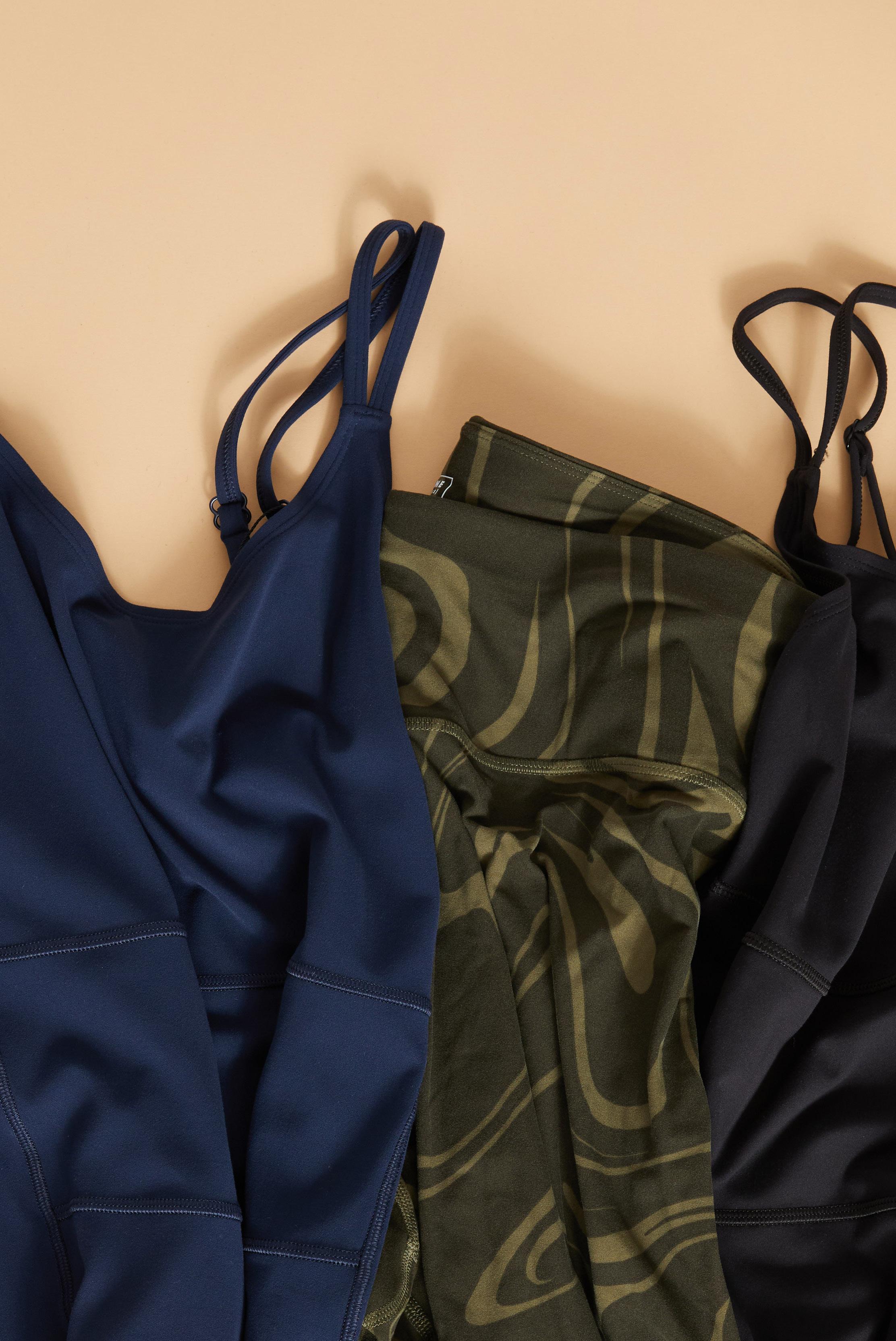 You guessed it. Our best-selling leggings, bodysuit, and zip-up jacket. Plus, you could have received light-as-air tanks and tees. Each piece is a winner. These sporty staples are the MVPs. As in, most valuable pieces...in your wardrobe.