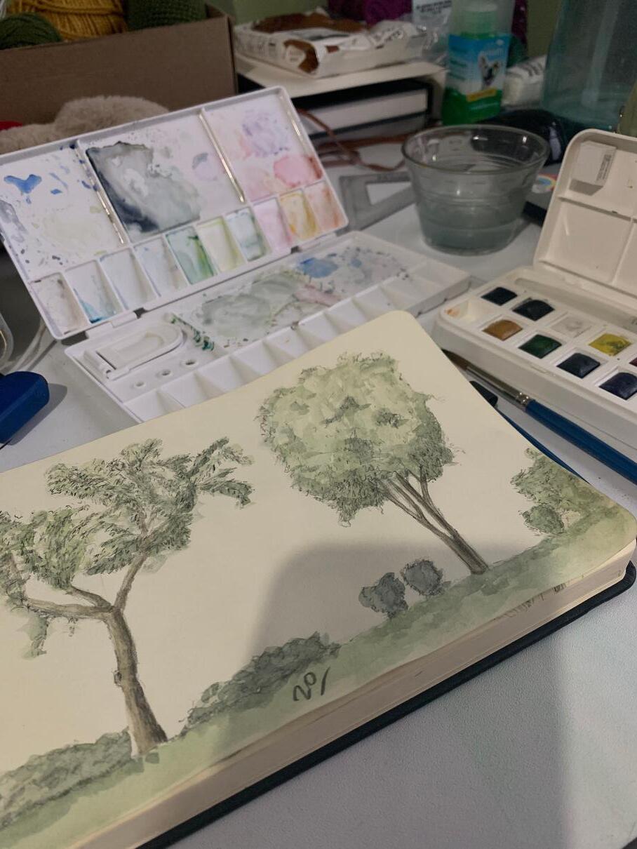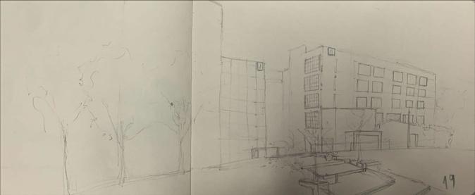 Primera salida para realizar un boceto. Se introduce poco a poco la ambientación del campus.