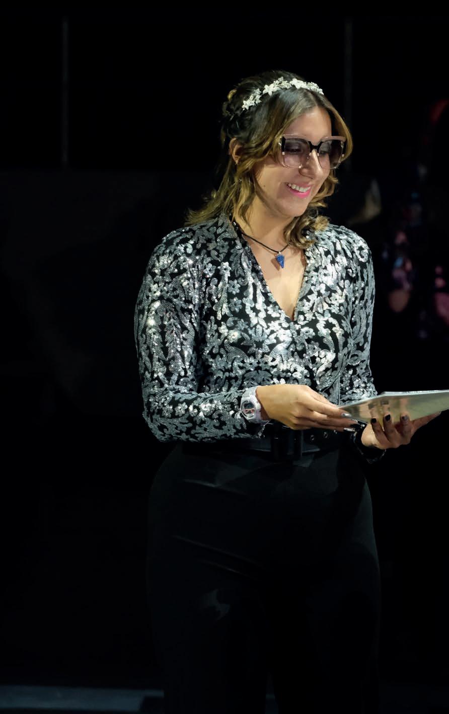 En la última función de Circombia de 2025, Daniel Samper entregó el cheque simbólico con la suma del recaudo para Pa’lante Colombia. Lo recibe Catalina Rizo.