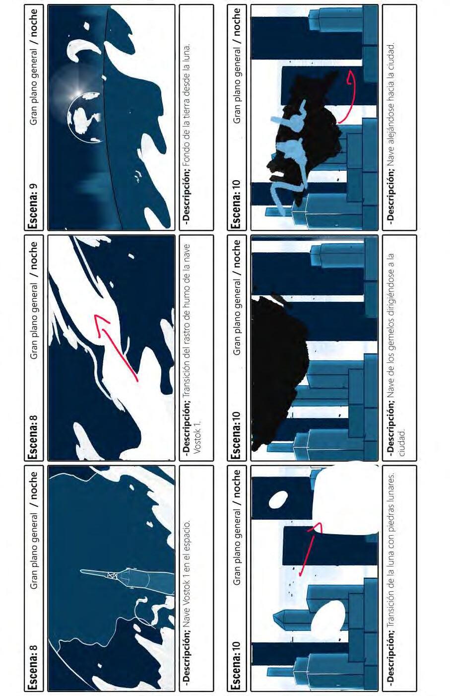 Estas escenas muestran locaciones de eventos importantes y fáciles de reconocer que ocurrieron en la tierra a través del tiempo transcurriendo hasta la época que pretendemos encontrarnos en nuestra animación. Esto nos ayudará a plantearnos en qué momento y espacio nos encontramos.