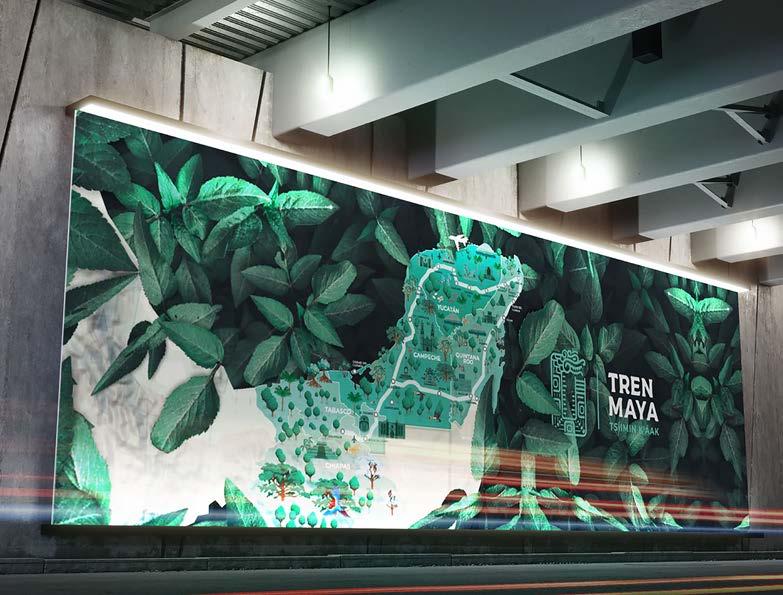 Entre los proyectos más retadores que ha enfrentado destaca el Tren Maya, dividido en tres grandes fases que representaron meses e incluso años de trabajo: primero la creación de la marca, luego el diseño y aplicación en los trenes y, finalmente, la señalética y la gráfica de las estaciones. Desde el inicio supo que el reto era enorme porque el proyecto tendría una implementación nacional, lo que exigía revisar cada detalle con sumo cuidado, consciente de que los costos de implementación eran mucho mayores a los de desarrollo y de que el mensaje