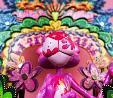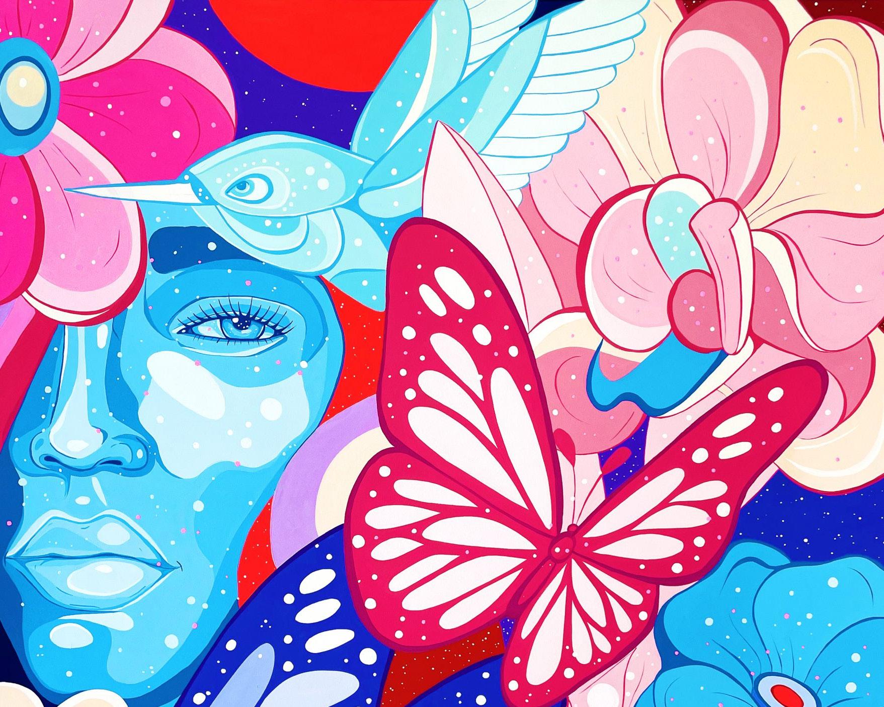 Su versatilidad la ha llevado a explorar distintos formatos, desde ilustración en productos hasta el arte digital con proyectos de NFT, como Cripto Lotería, y exposiciones individuales como la de 2022, donde presentó cinco piezas de gran formato junto con otras más pequeñas, resultado de un periodo de reflexión tras la pandemia. Para ella, esa exposición representó un renacer creativo, una forma de plasmar sus «fantasías posibles» llenas de color, símbolos y mensajes de transformación.