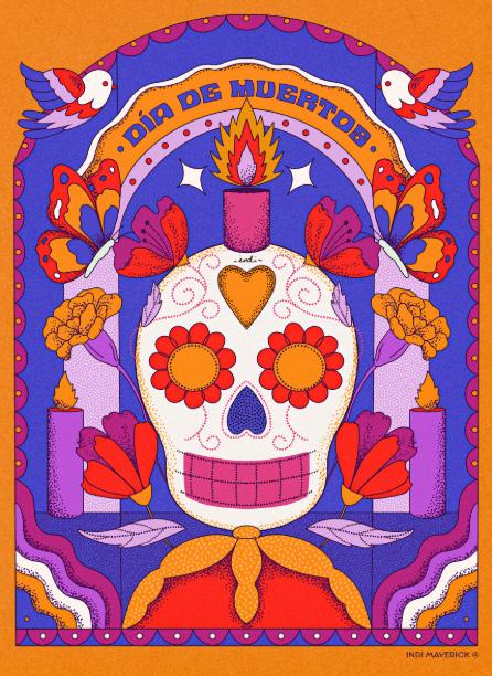 Ilustraciones de artistas famosos para el proyecto Spotify Day of the Dead Portraits.