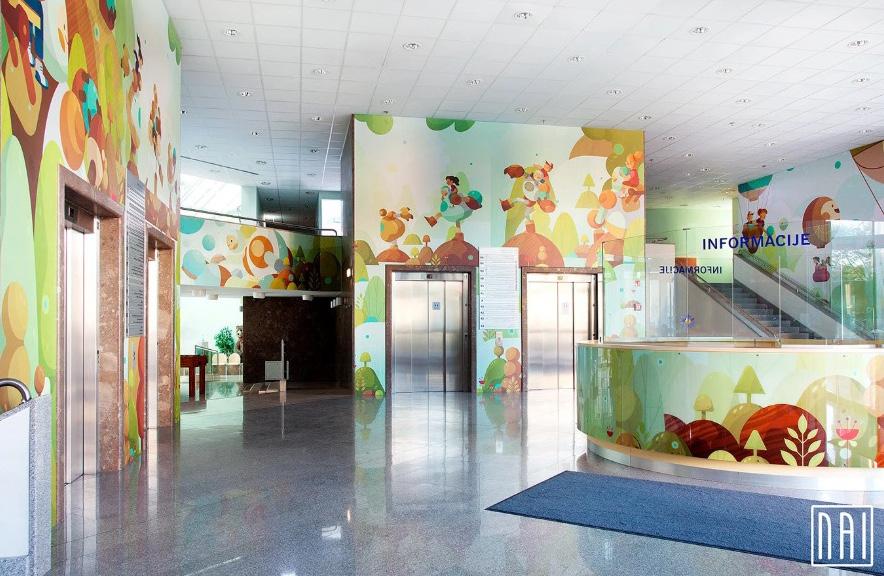 Ilustraciones en espacios hospitalarios y comunitarios en Eslovenia.