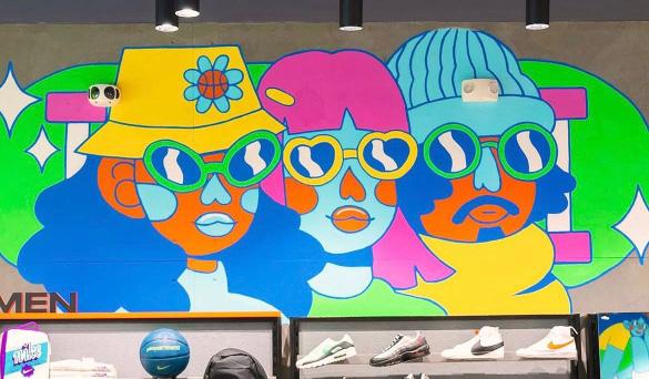 Más tarde en el mismo año colaboró nuevamente con Mural Agency en un mural e ilustraciones para una sucursal de Shake Shack en Monterrey, en el que, a través de personajes y símbolos icónicos de la ciudad, creó una composición vibrante que refleja la esencia de la marca con un toque fresco y femenino.