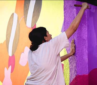 Marbella pintando el mural.