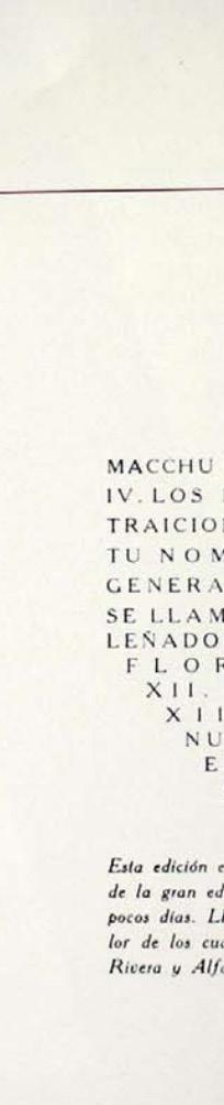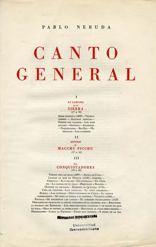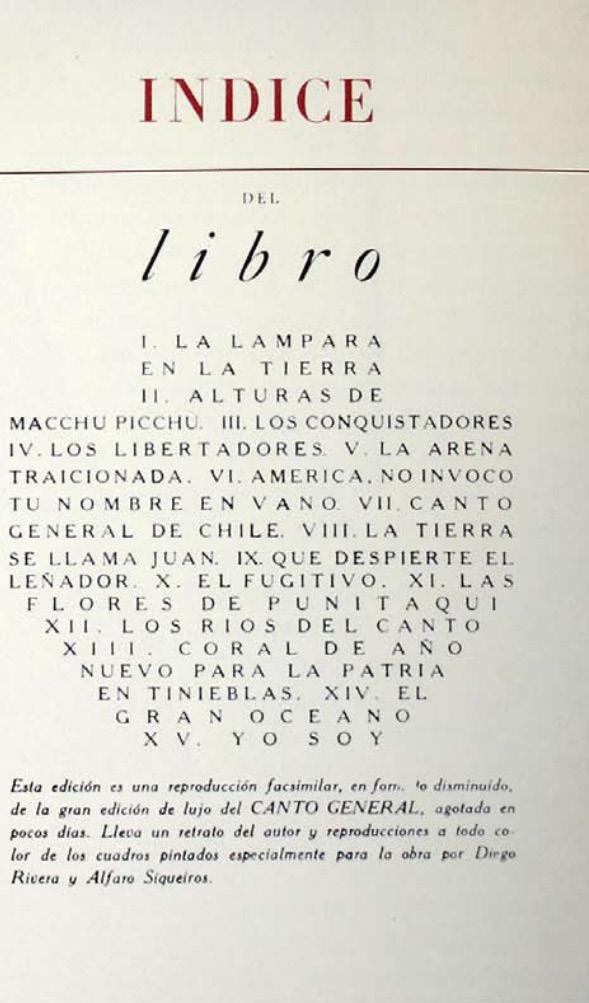 ILUSTRACIÓN DERECHA Indice de la primera edición de Canto General, 1950