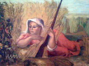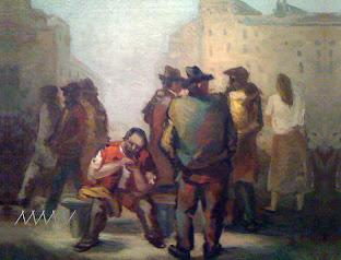 Pinturas como “La siesta / La soledad” 1947, “Los guerrilleros del trigo / Guardando el trigo” (1945) o “Los milicianos” (1952) son obras que tienen mucho en común entre sí, por la proximidad del tiempo y por su lugar de ejecución, como es lógico, pero no dejan de recordar las imágenes de los primeros personajes plasmados por Prieto en su época española.