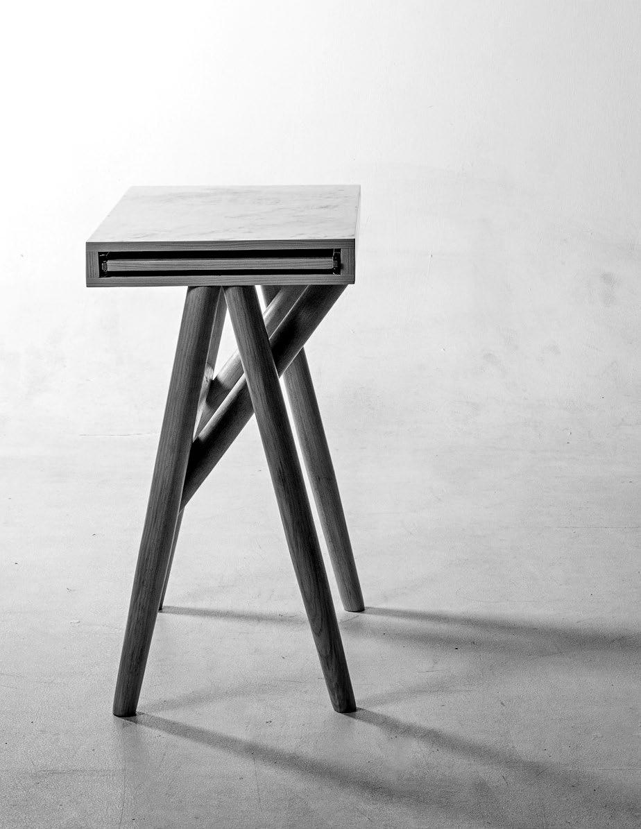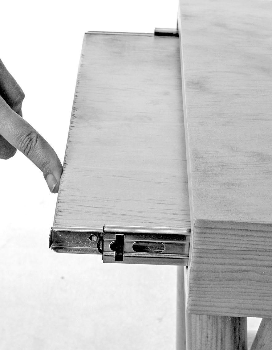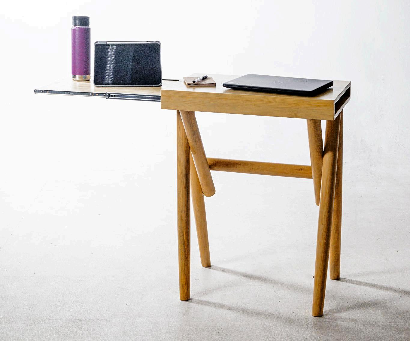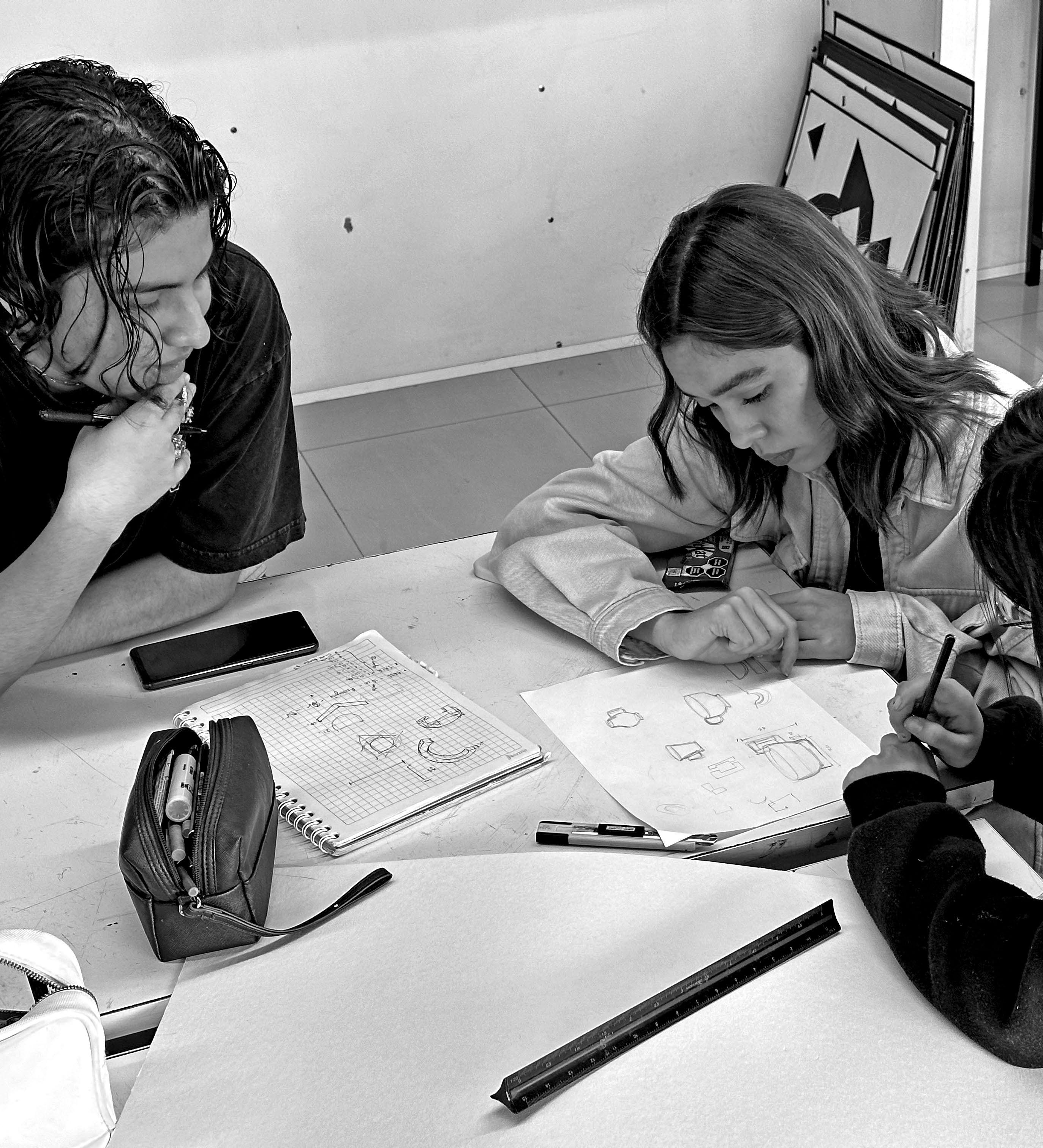 Se realizó una documentación y análisis de propuestas en las que se resolviera el diseño de una mesa para las pertenencias de los docentes en espacios mínimos. Tras la visita de campo, se generaron bocetos y maquetas a pequeña escala (a) hasta la producción de prototipos en madera (b).