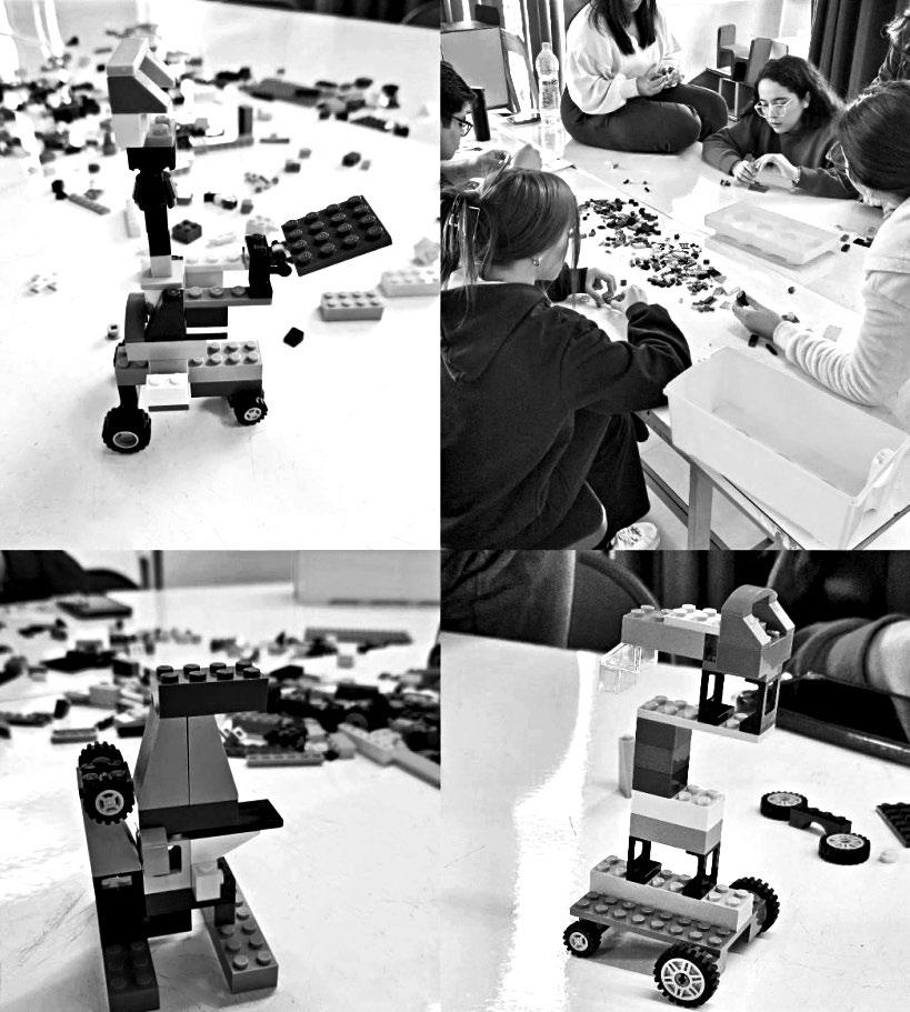 Tras la documentación de los diferentes dispositivos luminosos y sus materiales, se exploraron formas con bocetos y piezas de Lego (a). Se generó un plan para todo el proceso de producción (b). Se revisaron los mecanismos propuestos entre alumnos y docentes invitados para que, con los resultados, presentar prototipos de cartón sobre los cuales hacer cambios. Se visitó el taller MACHO Taller Mx y se integraron materiales de reuso para crear el dispositivo luminoso funcional (c).
