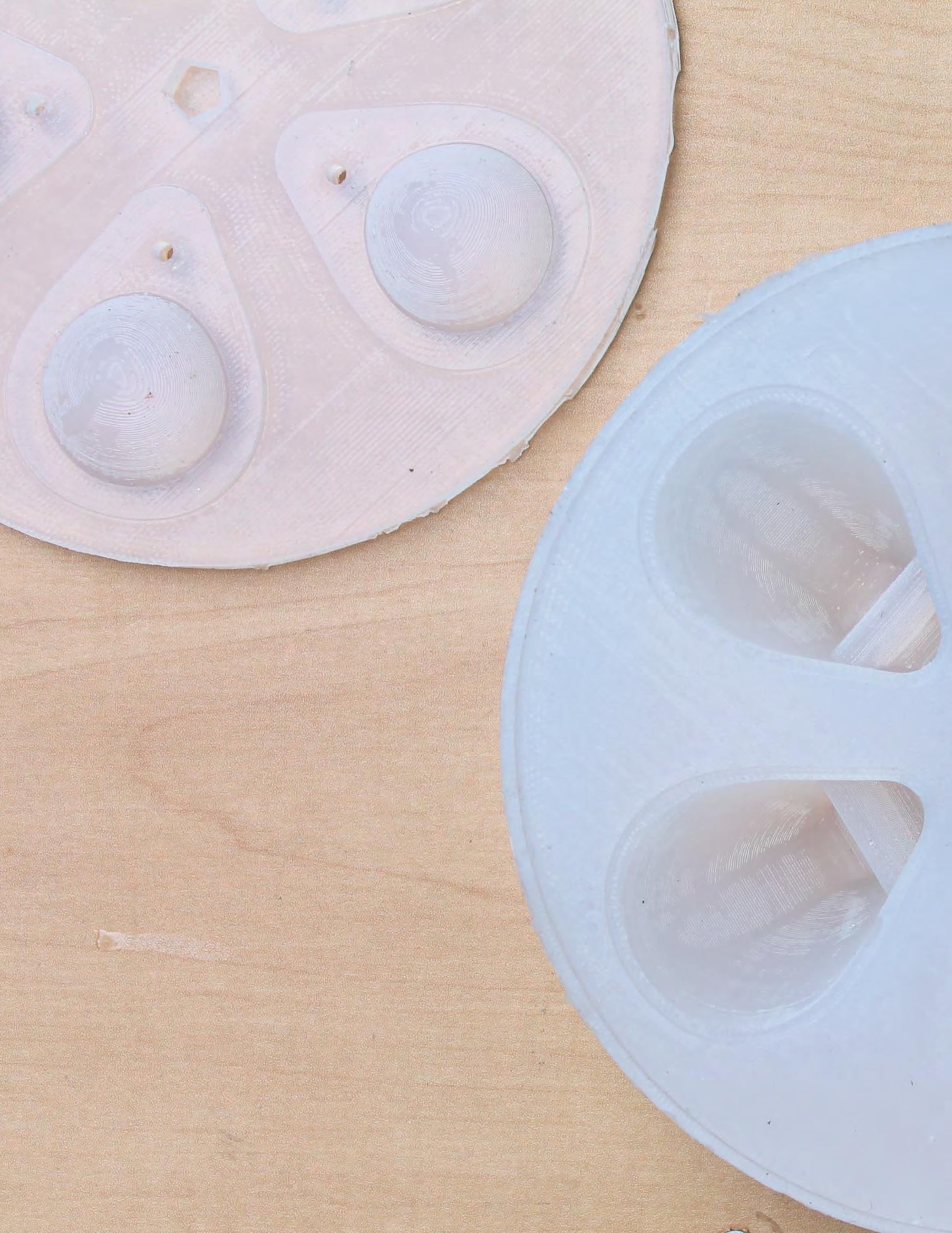 desniveles para asegurar un cerrado hermético en los moldes. Sin embargo, creo que el resultado es una serie de moldes ergonómicos, estéticos y prácticos que generar objetos atractivos y funcionales que promueven la exploración de sabores y rellenos, así como una divertida interacción con el usuario.